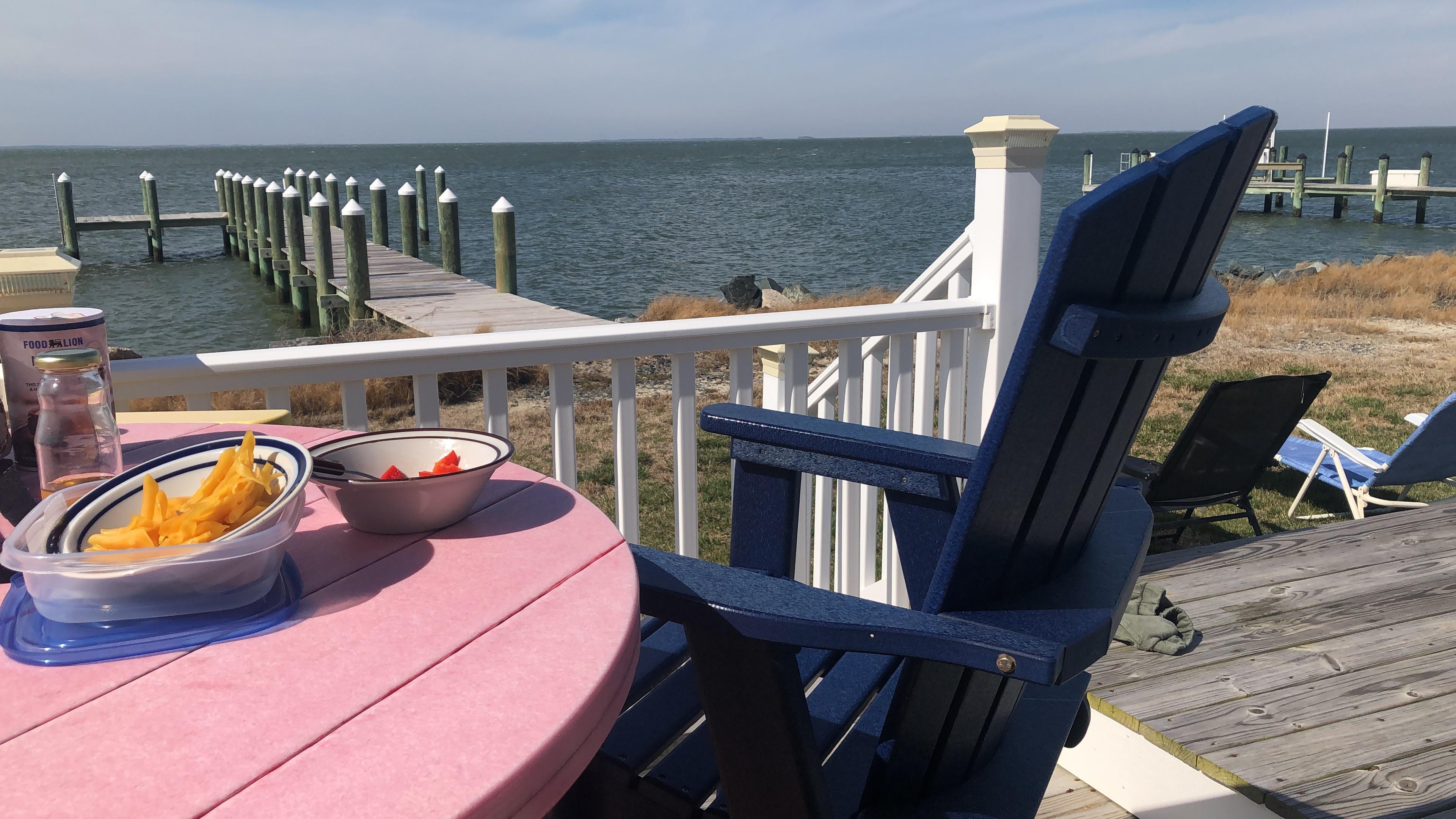Waterfront cottage, located on Tangier Sound, with a private pier for fishing and crabbing. Regardless of the time of year, the views are captivating, from the Living Room, Sunroom, and the spacious deck. Sleeps 6; 1 Bedroom with queen size bed, 1 Bath with walk in shower, Kitchen, Living Room with pull out sofa, Spacious Sun Room with pull out sofa, Large open deck, with private pier. Ground level deck at entrance. Queen size bed in bedroom and two queen size pull out sofa's. Kitchen is fully equipped with dishes, pots/pans, utensils, appliances (coffee pot, slow cooker, toaster, blender, mixer, microwave). Dining table in the spacious sun room with an abundance of windows to view Tangier Sound. Enjoy fishing and crabbing directly off the pier and enjoy drinks and dinner on the spacious open deck. 2 miles from public boat ramp and public beach....so bring your boat, kayak, and or canoe.