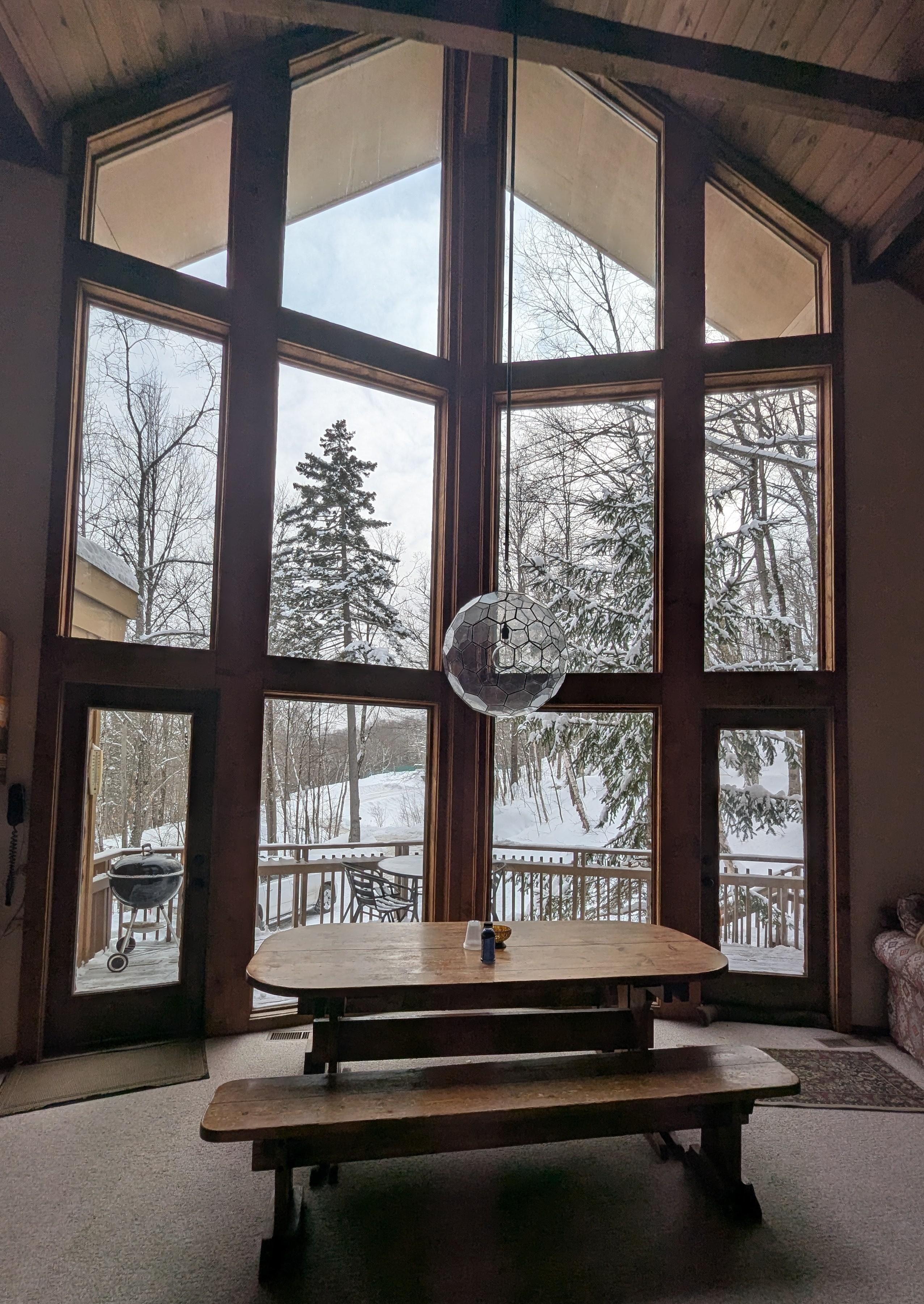 Ein wahres Chalet! Sehr berühmt. Dezemberferien & MITTE-WOCHEN verfügbar, plus ein paar Wochenenden in dieser Saison. Vermieter kontaktieren für reduzierte Skiwochen unter der Woche. Das Hotel liegt auf der anderen Straßenseite vom Great Eastern mit Wandern vor der Tür. Sonnenschein Deck !!! Dieses holzige, rustikale Chalet befindet sich am Great Eastern Trail neben der 'Skibrücke'. Ziehen Sie im Winter Ihre Skier an und steigen Sie in die SkyeShip-Gondel. Die günstige Lage und der offene Grundriss des Chalets machen es ideal für Familien und Freunde. Kein Fahren auf die Piste! Zum Mittagessen können Sie mit den Skiern nach Hause zum Chalet fahren und sich am Feuer aufwärmen. Beobachten Sie dann die Ski- und Snowboard-Action auf der Piste direkt von den großen A-Rahmen-Fenstern aus. Ausgestattet mit Wi-Fi, TV-Lounge, gemauertem Kamin, 2 King-Size-Betten, 1 Queen-Size-Betten, 1 Twin-Size-Betten, 2 Etagenbetten und 2 zusätzlichen Schlafnischen und Futons in Kindergröße. Das Chalet hat eine charmante rustikale Atmosphäre mit Abstellgleis und Holzbalken und einem offenen Grundriss. Buchen Sie jetzt Skiwochenenden und Urlaub unter der Woche. 14 Schlafplätze in 4 privaten Schlafzimmern und einem offenen Schlafboden (2 Königinnen und 4 Kojen).