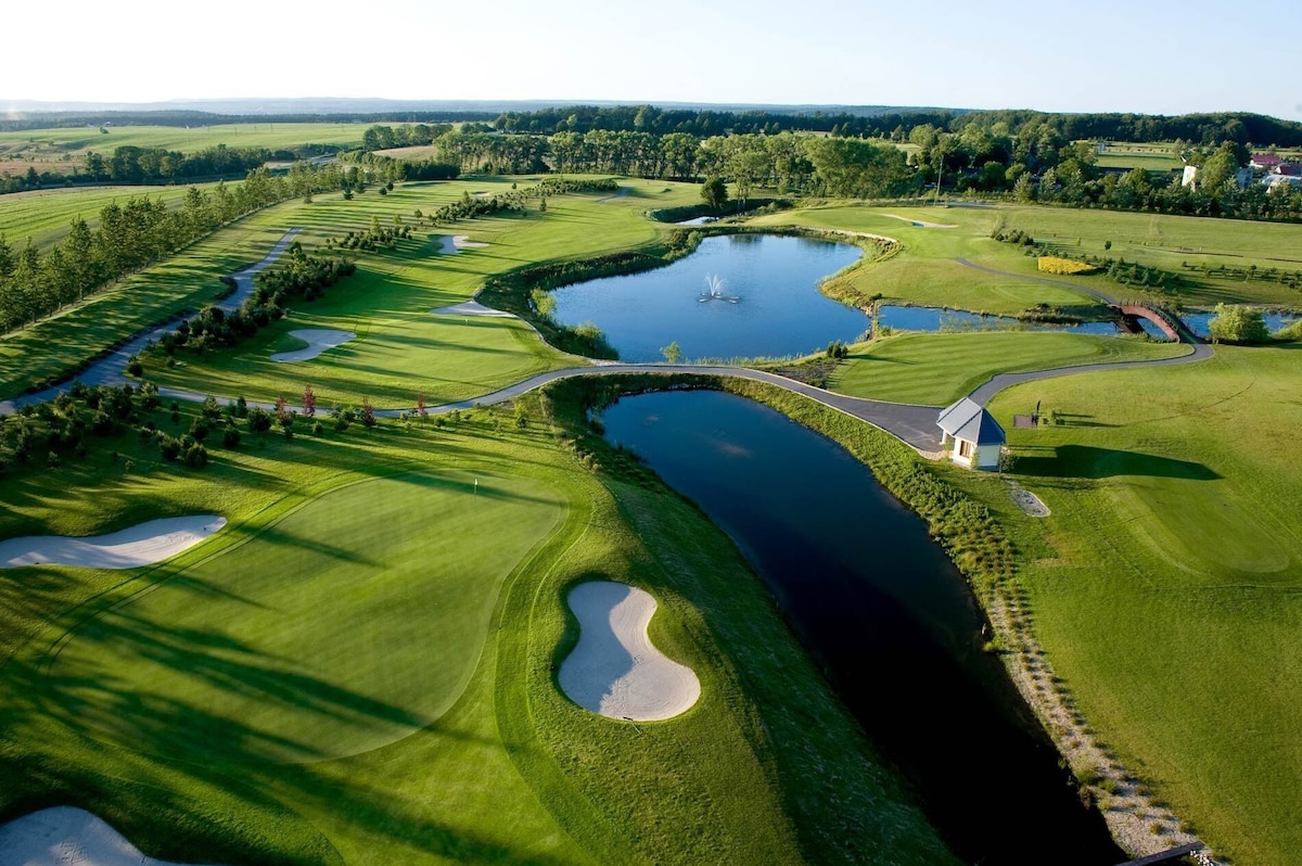 Located in the Sierra Golf Resort in Petkowice, Poland 🇵🇱 our two-bedroom house has a private garden and private parking.