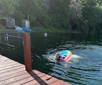 Privacy, nature, wonderful sunrise and view . Beach has a dock and extensive seating w/ shaded area. Canoes, kayaks and paddle boat available for guests. Great for swimming and fishing.