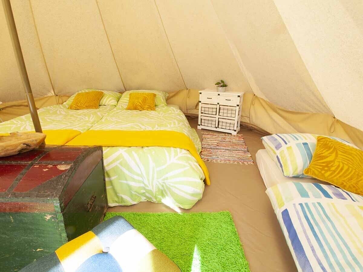 Glamping eco-canvas tent for up to 4 creatures. Inludes a private entrance and beds with bedding. All other facilities are shared as a part of Kamp Velebit: guest kitchen indoor and outdoor (fully equipped with utensils, cookware, and fridges), toilets, showers, bbq, campfire, and dining areas. Parking is included and depending on the camp occupation you can park in front of the unit.