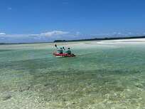 Step down from the spacious sundeck and covered porch directly onto the soft sand, where your own private tiki hut awaits. Spend your days swimming, snorkeling, kayaking, paddleboarding, or simply relaxing in the shade with the water just a few steps away. The calm, shallow shoreline is ideal for all ages and all activities—including fishing right from the beach.
