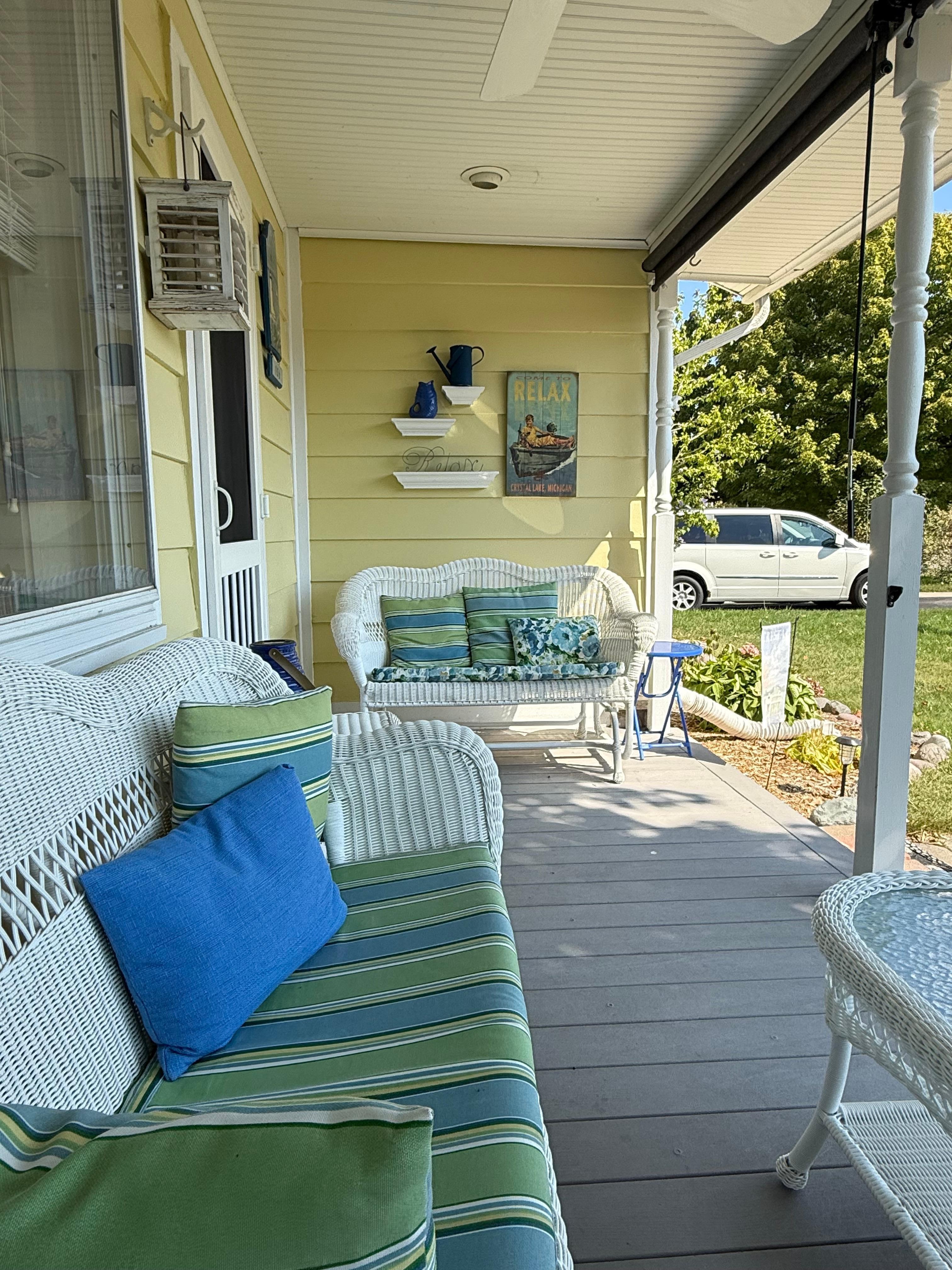 We are so proud of the recent renovations to the Beulah Lakehouse (updated and newly renovated kitchen) and numerous updates throughout. Also, I have enjoyed giving the exterior a fresh look with a fresh paint job and some new landscaping. Please enjoy our adorable front porch where you can enjoy your morning coffee , an afternoon read, an evening cocktail or an evening fire. There is a roller blind on the porch. We are steps away from the quaint Village of Beulah with all that entails: coffee shop, bagel/deli, restaurants, sport shop (kayak, bike and stand up paddle board rentals, Five Shores Brewery) but most importantly, we are one house off of beautiful Beulah Beach on Crystal Lake. Just steps away from the beach, boat ramp, T-Dock (great fishing) and the most exquisite lake. Crystal Lake is spring fed (crystal clear).
