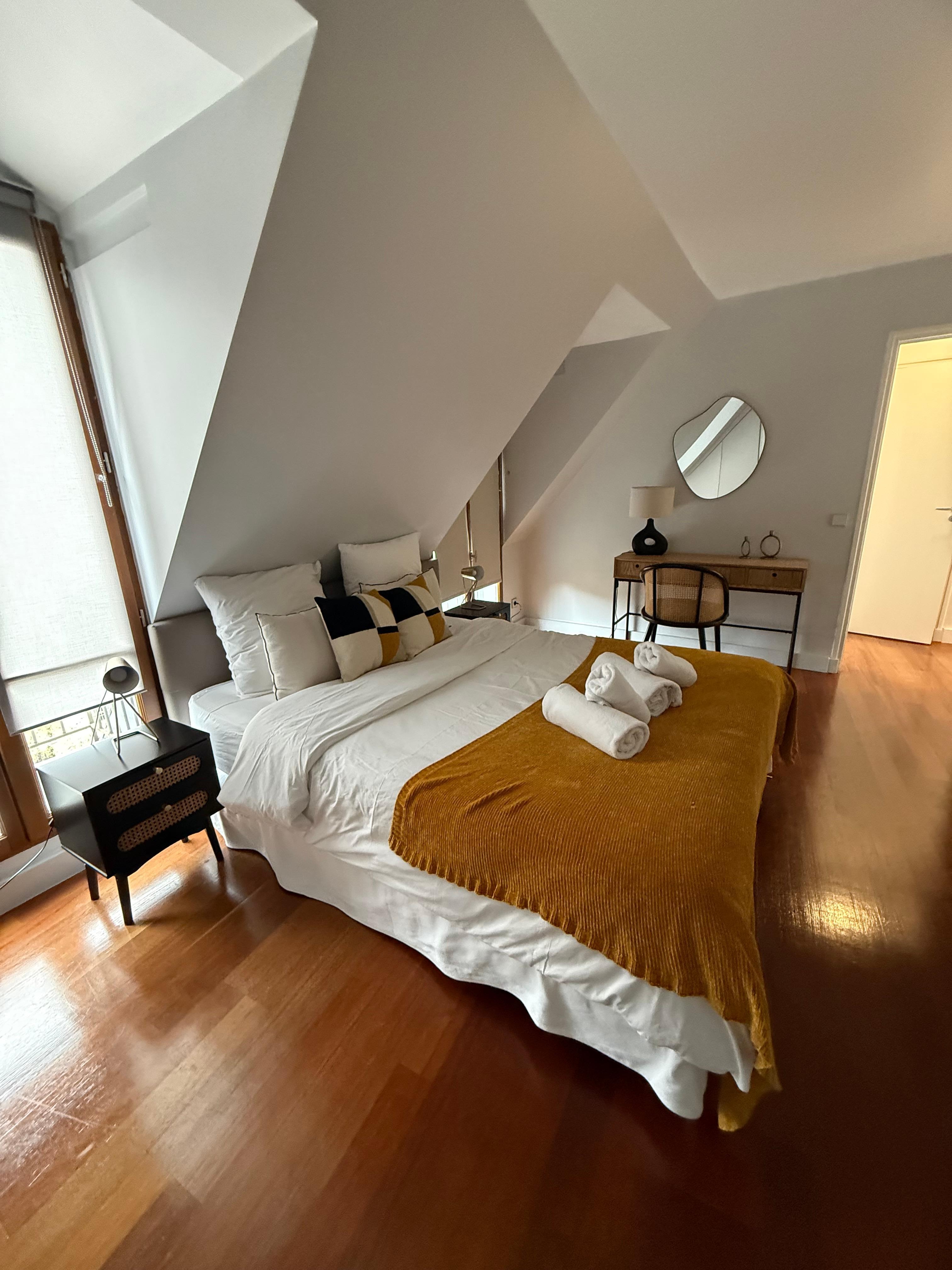 Gültig ab 26. Apr. 2026: Die Preise für 1 Übernachtung für 2 Erwachsene im Appartement vue sur la Tour Eiffel am 8. Aug. 2026 beginnen bei 800 € (inklusive Steuern und Gebühren). Dieser Preis basiert auf dem niedrigsten Preis pro Nacht innerhalb der nächsten 30 Tage, der jeweils in den letzten 24 Stunden gefunden wurde. Die Preise können sich ändern. Wähle deine Reisedaten, um genauere Preise zu erhalten.