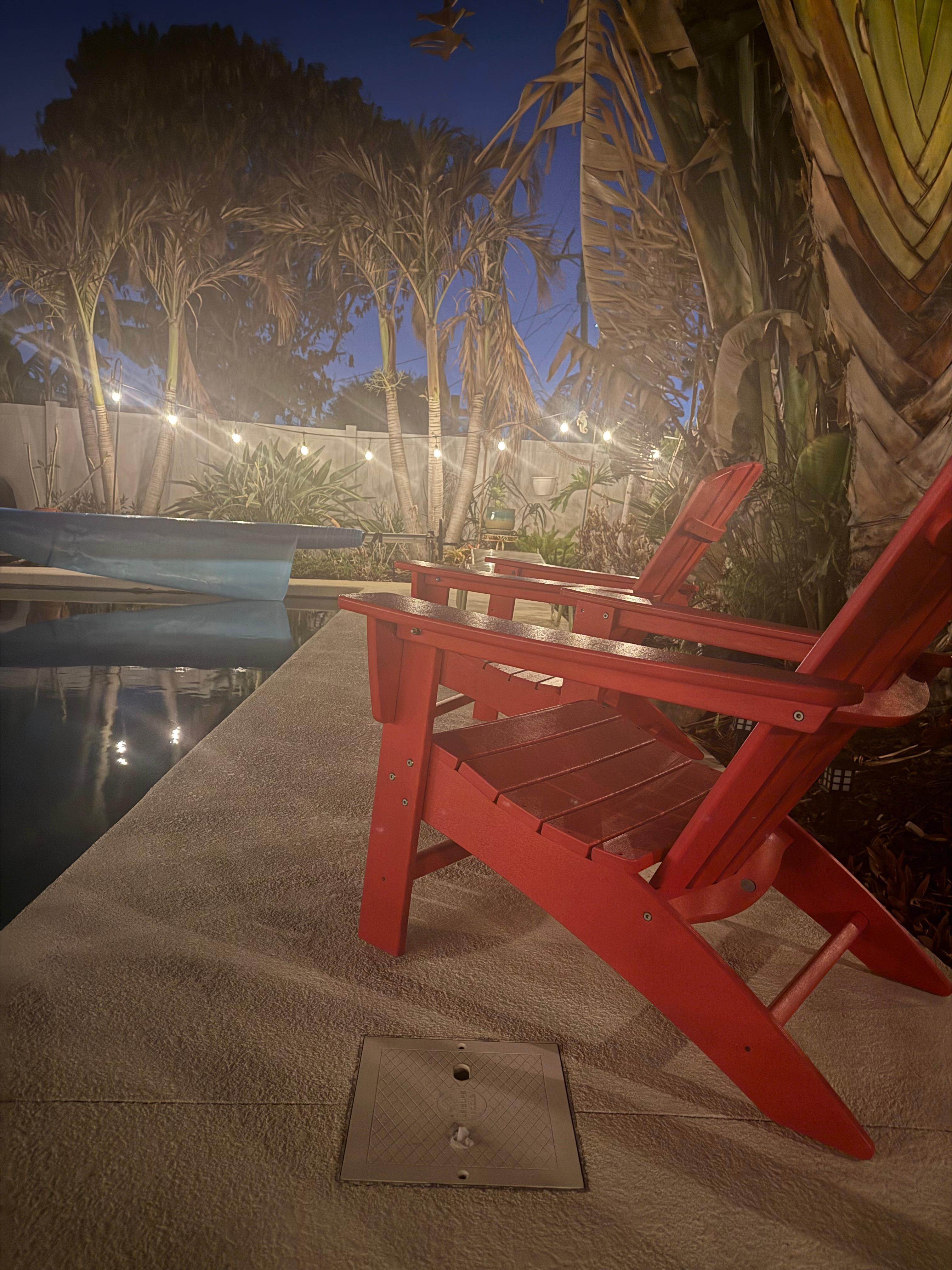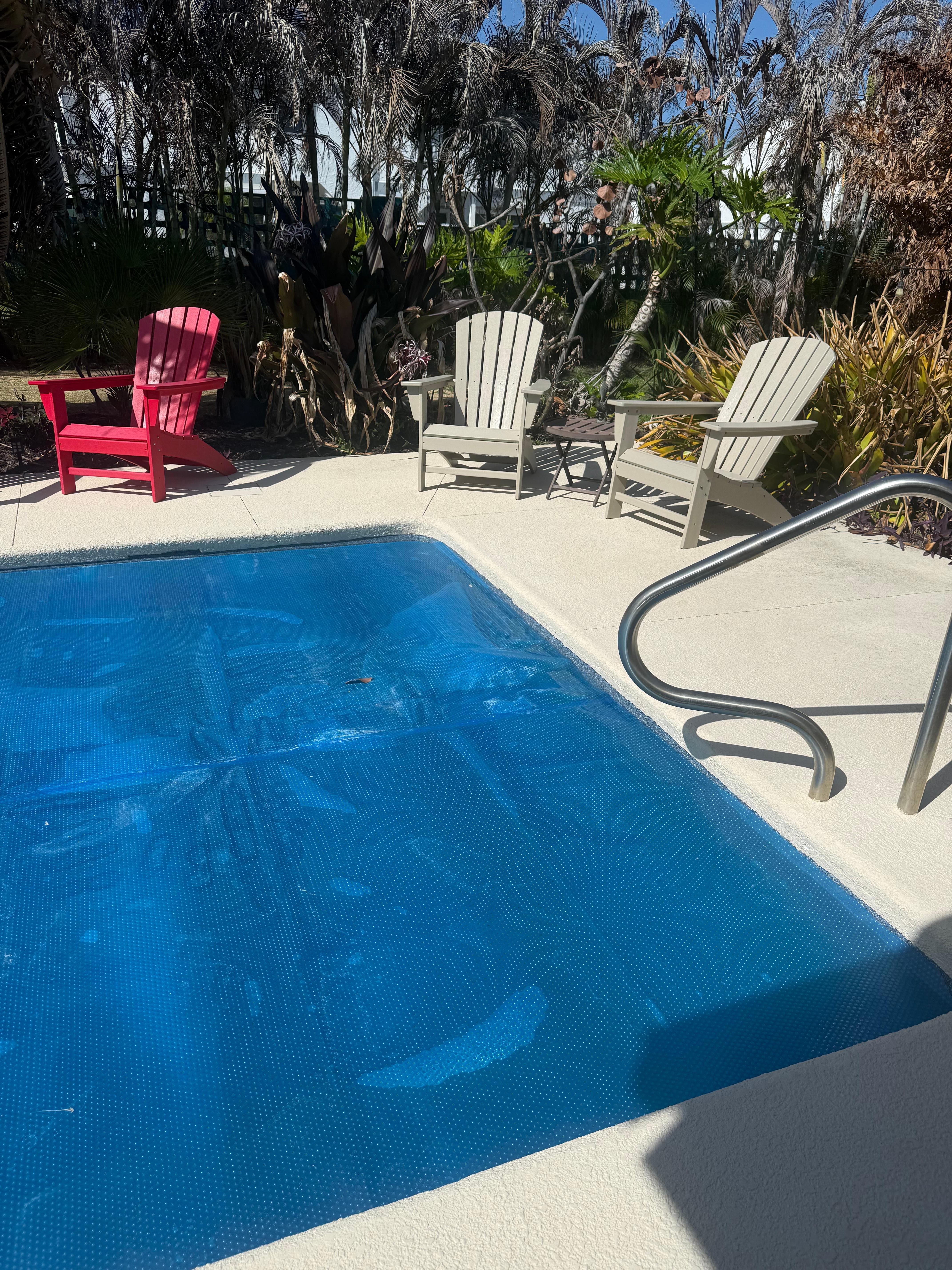 Cute retro home in quiet safe neighborhood, such an easy short walk to the beach with a great beach wagon provided. Best pool ever— warm, with a great roll cover. Lovely covered outdoor seating area where we had coffee each morning.
