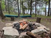 Spend your days basking in the sun on our back patio or back yard - all just STEPS from Beaver Lake. Our back patio features cozy seating and outdoor dining space for your crew to enjoy meals fresh off the Big Green Egg grill. Our treehouse is situated in the backyard, offering the ultimate movie night experience, with a Smart TV and plenty of space to lounge. When you're ready to hit the water, we've got you covered! We have float boards, a canoe, an inflatable raft, and an inner tube all for guest use on the water. Best of all, enjoy gorgeous sunsets over the lake from our home every night!