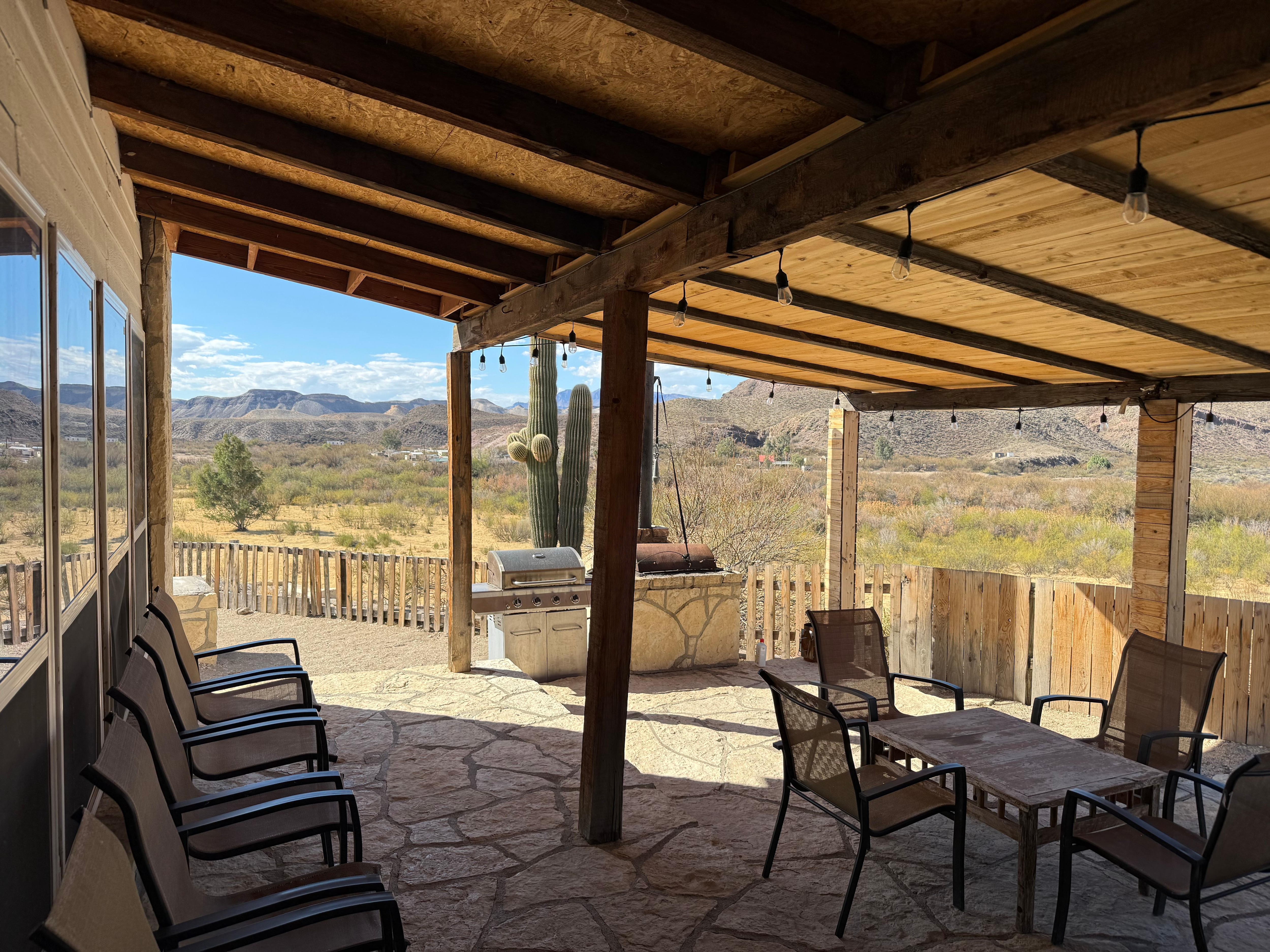 We loved sitting in the back yard knowing we were looking into Mexico as the sun set. It was beautiful! We built a fire, listened to our favorite Big Bend music and shared memories of our lifetimes. This house allowed all 10 of us to sleep comfortably. We never found a light switch in the downstairs bedroom at the back of the house - lucky we brought flashlights. Other than that and not enough hooks for towels when 4 people are sharing the bathroom, it was a great house. We would love to stay there again!