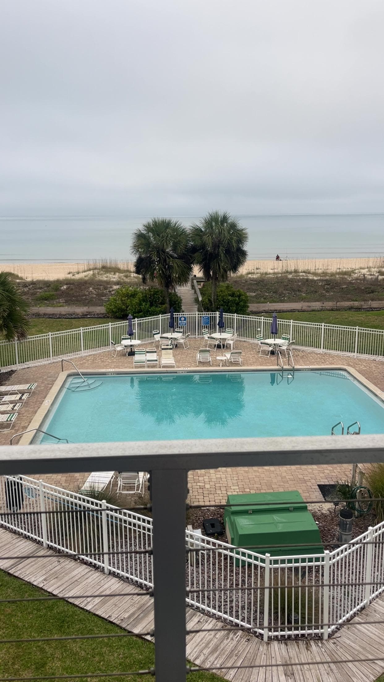 Great location on St George Island. You can easily see the ocean from the main bedroom, the living room and the associated balconies. The walk to the beach is an easy one and the grounds were clean and well kept. Jenny was a wonderful hostess reaching out as we were traveling down and quick to respond to any message sent. I saw the pictures of the steps inside the condo in advance of booking but it didn't register in my mind that the bedrooms and bathrooms were on the third floor. Keep that in mind when packing.