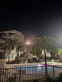 Sleeps 4-5 - 2 Masters (Queen & King) Bedrooms with private En-Suites. Equipped with three A/C units & ceiling fans. Including Fall in love with our newly renovated Condo facing a gorgeous view of 2 pools , 12 steps away with a 3rd one just across the way & Club house. Safe Small Gated Community with 24/7 security.