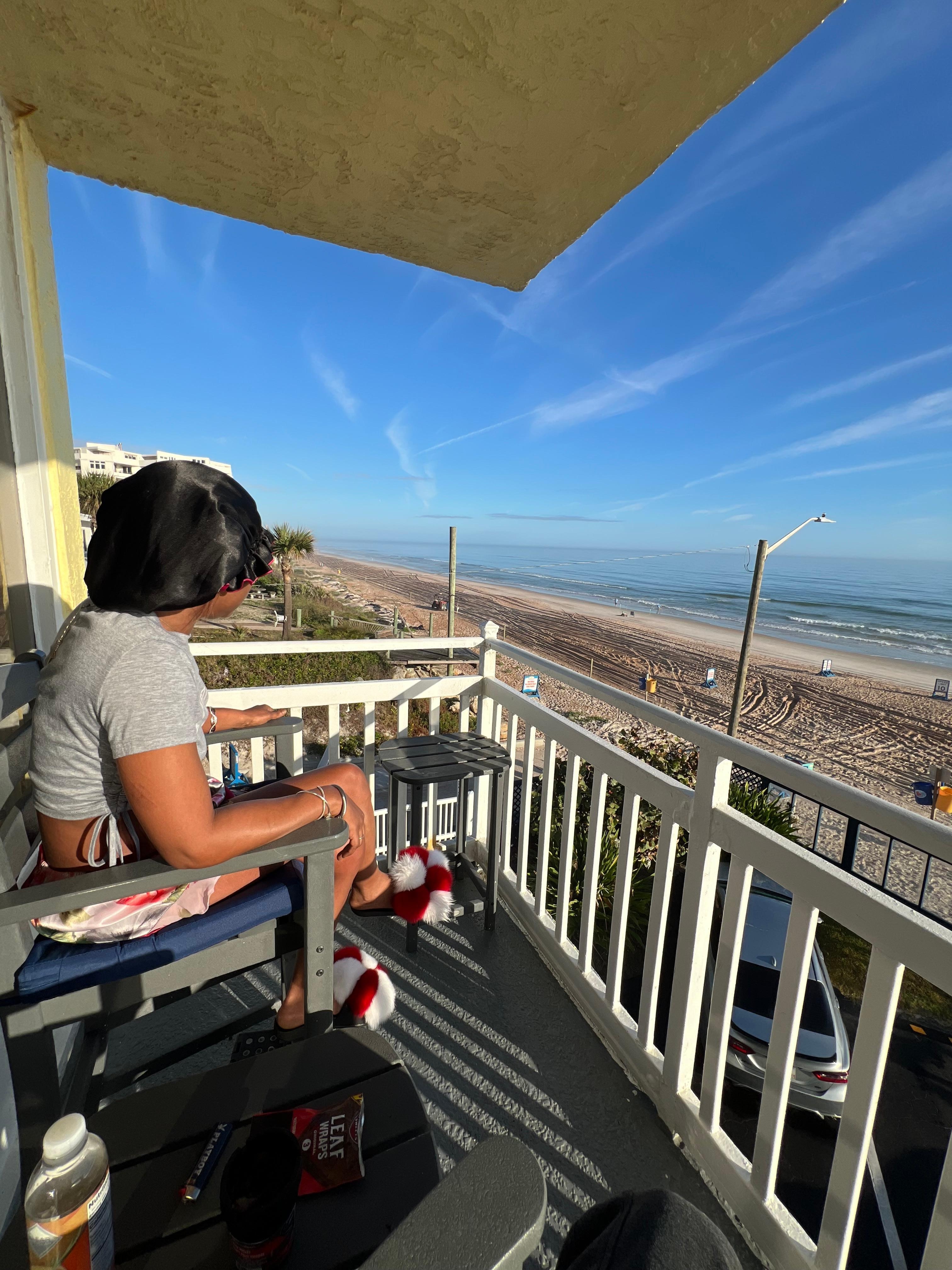 This studio has direct beach front views and is 389 sq ft. The building has wooden steps to the beach directly in front of this unit. Whether you look left, right, or straight ahead the ocean is what you see. Don’t be fooled by misleading ads. There is a limited number of units in the building (12) that have balconies that directly face the ocean, and this is one of them! Don’t be disappointed, If comparing listings, always ask if the unit is DIRECT VIEW OCEANFRONT. Why look at the ocean from a side balcony, when you can rent the real thing! Besides linens and bath towels, Beach chairs, beach towels, beach tent, beach mats, and a beach umbrella are included in unit for your exclusive use. 10x10 canopy available upon request(stored off property). In addition to cable tv, HBO/Max (just added 8/22), Netflix, Prime channels, and Pandora available. We intend to provide you with the best rental experience possible!
