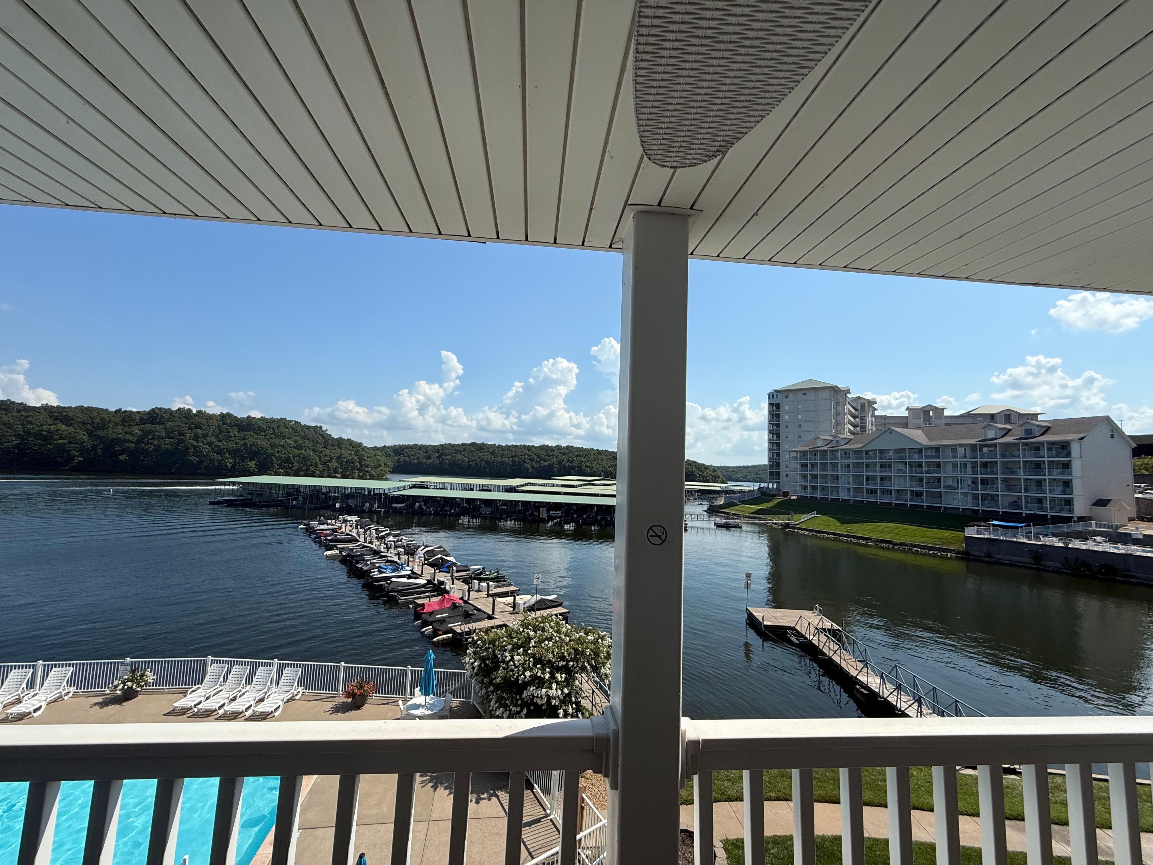 Der Balkon bietet direkten Blick auf den Pool im Zentrum und den Angelsteg am See. So macht es Spaß, auf dem Balkon rumzuhängen! Im Balkonbereich befindet sich ein Schrank, in dem Sie weitere Kleinigkeiten (Poolspielzeug, Lounge zum Aufblasen usw.) finden, um einen schönen Urlaub zu verbringen.
