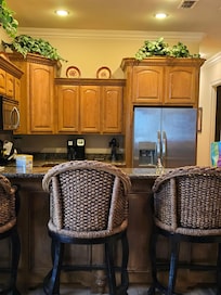 Staying in a condo is like staying at home...but a lot better. Our upscale condo is clean, freshly painted in 2025, we added new curtains, and two matching recliners in the living room. You can really relax while in the condo and there is plenty of room for the kiddos or a second couple to have their own space. If you love to cook, or just want to make a bowl of cereal, the kitchen has everything you need. What we really love about our condo is the walking distance to the beach. Once out the front door you are only 200 feet to the sand. At the end of the day, it is just enough walk to shake off the sand and drip dry before you jump into the community pool. It's a great way to end a day at the beach.
