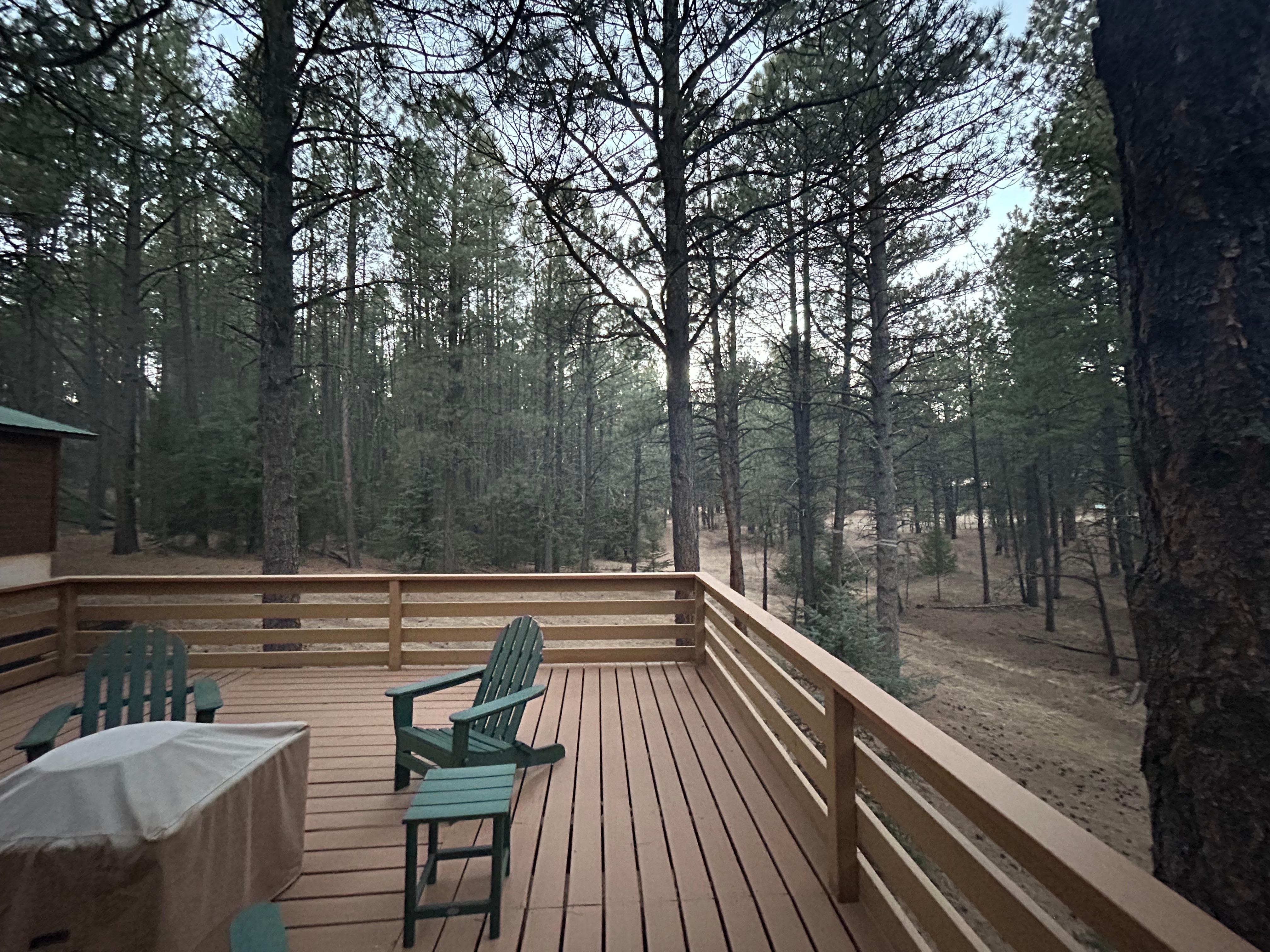 This place is exceptional. The deck was amazing! We enjoyed sitting out by the firepit enjoying the beautiful evenings while we grilled out dinner! They have added so many extra touches. There was a welcome basket of goodies and homemade cinnamon rolls in the fridge for us. There are even bird feeders hanging in the trees! Highly recommend!!