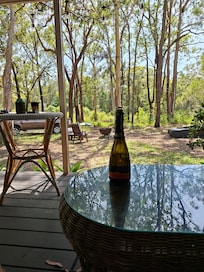 In the natural bush amphitheatre, you will wake to a chorus of native birds and, in summer, cicadas. Resident visitors include kangaroos, wallabies, goannas and echidnas. Koalas have been spotted on the property.