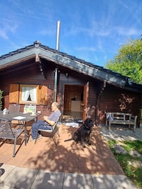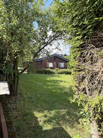 ZusĂ€tzlich wurde hinter dem Haus noch ein kleines HolzhĂ€uschen von 7 qm mit Fenster, zwei Einzelbetten und Stromanschluss aufgestellt. Es können hier noch zusĂ€tzlich zwei Personen (Ihre Kinder werden es lieben) ĂŒbernachten.