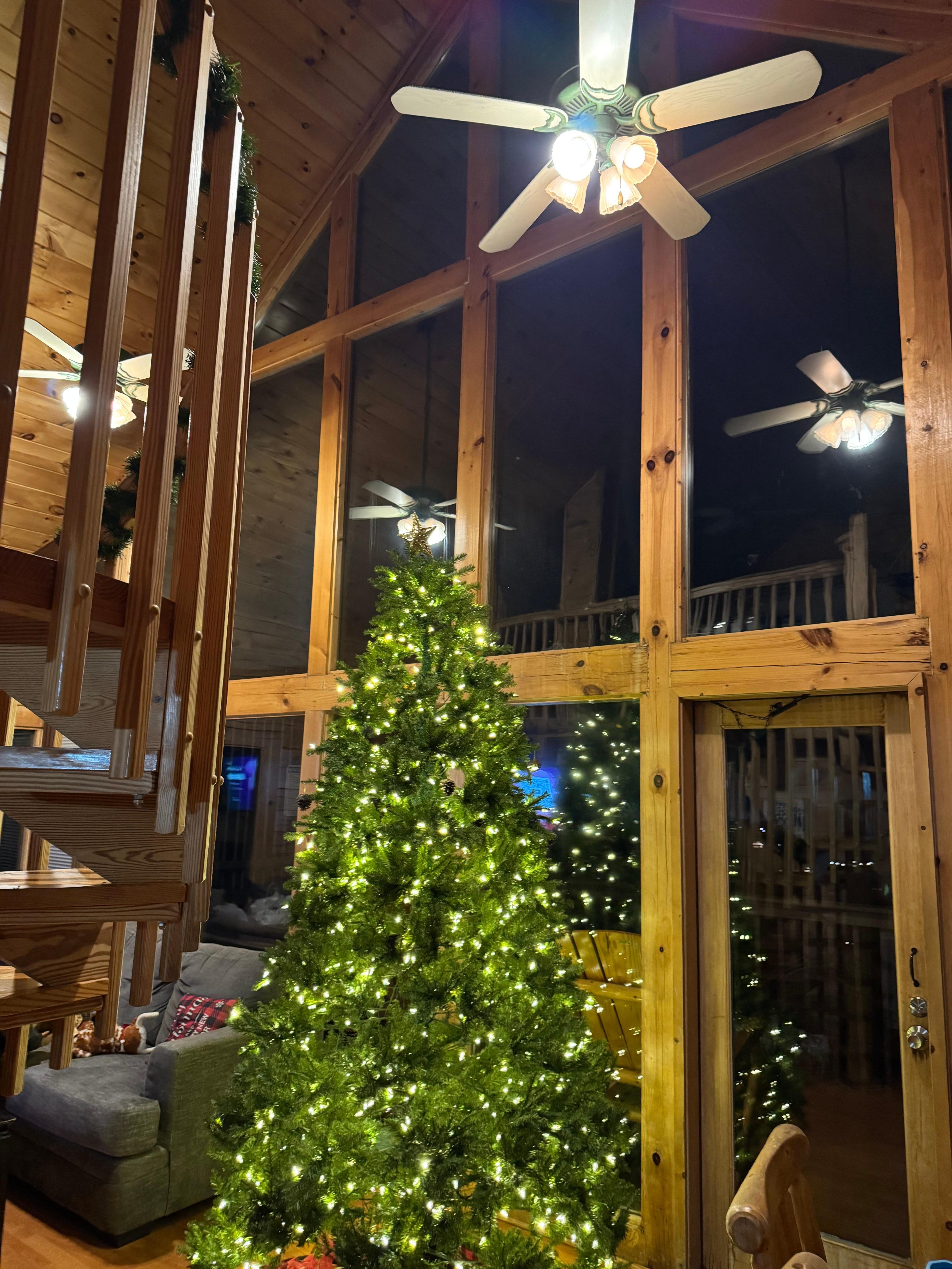 Escape to this quiet mountain-top cabin with giant panoramic windows and amazing views. The log cabin home, aptly named Crosswinds, is perched among the treetops, above the rolling hills of the Smoky Mountains and all that it has to offer. Nestled between Pigeon Forge and Gatlinburg, this cabin is near hundreds of miles of National Park trails, Dollywood, and the Arts and Crafts Community – all within a 10 mile radius.