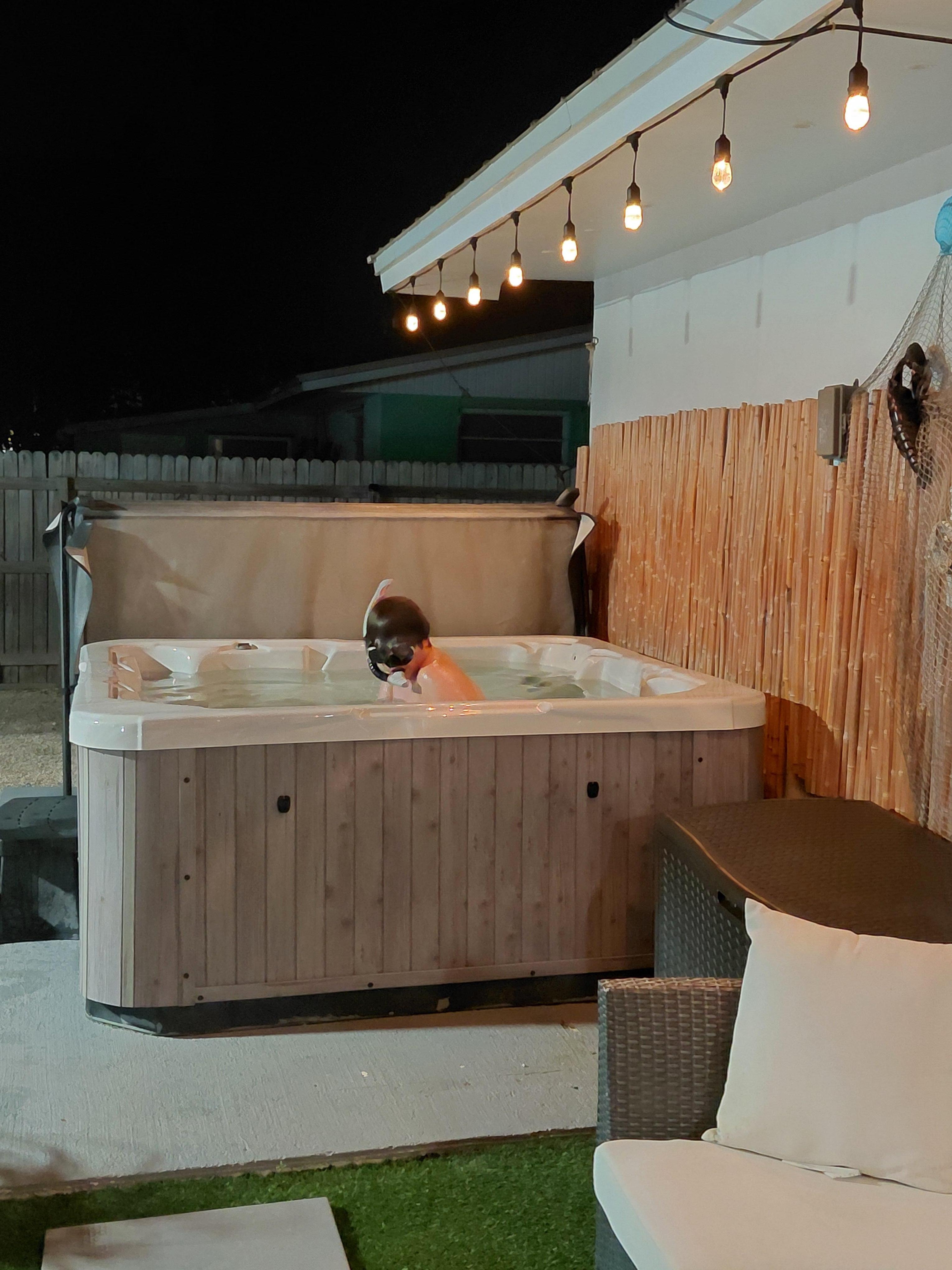 • Large above-ground pool and relaxing hot tub