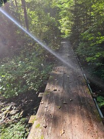 Unfenced creek & foot bridge w/o railings