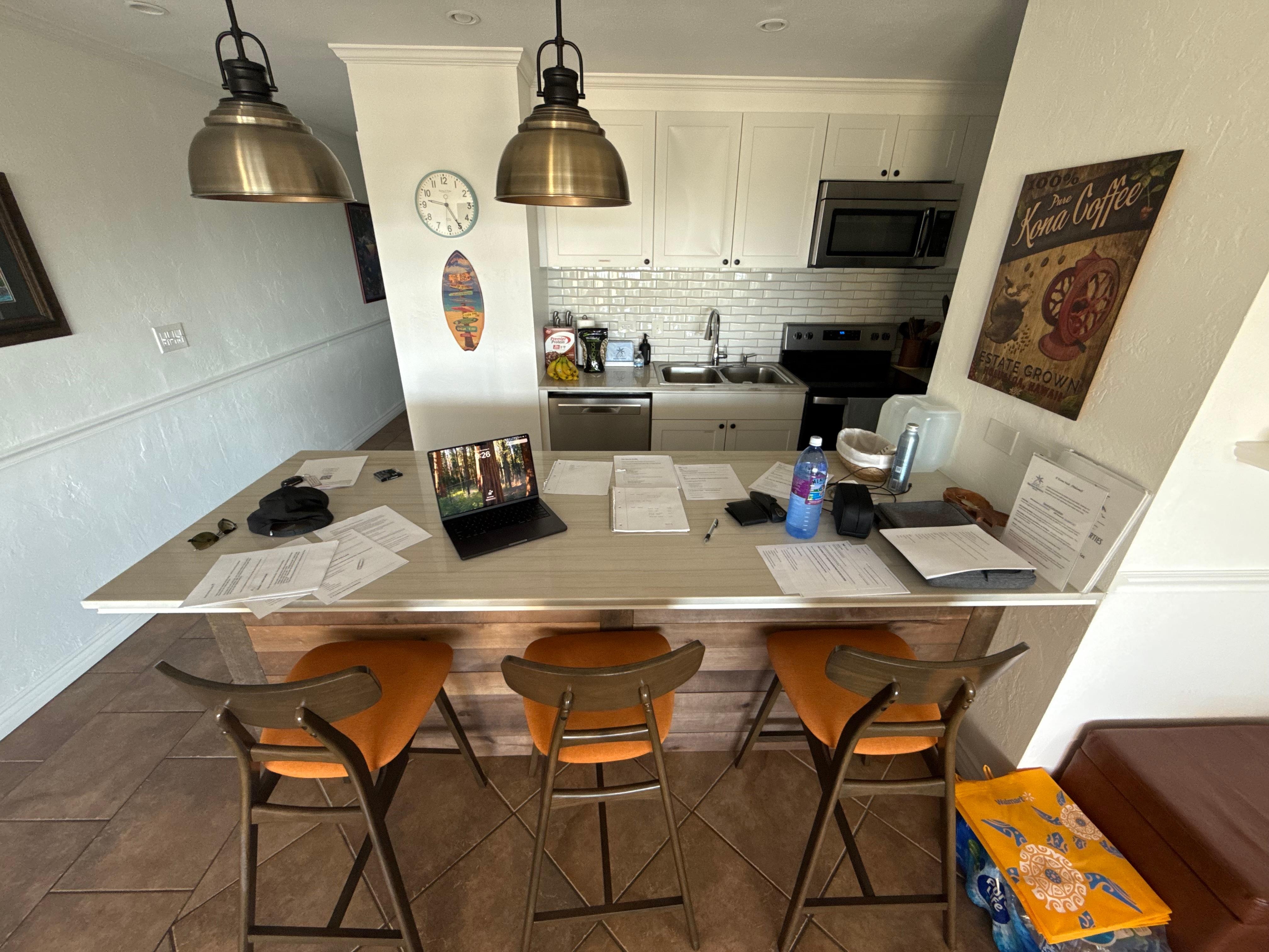 The condo boasts a well-equipped kitchen, complete with modern appliances such as a refrigerator, microwave, oven, and dishwasher, along with essential cooking basics and spices. Enjoy your meals at the dining area or take them outside to savor the fresh Hawaiian air.