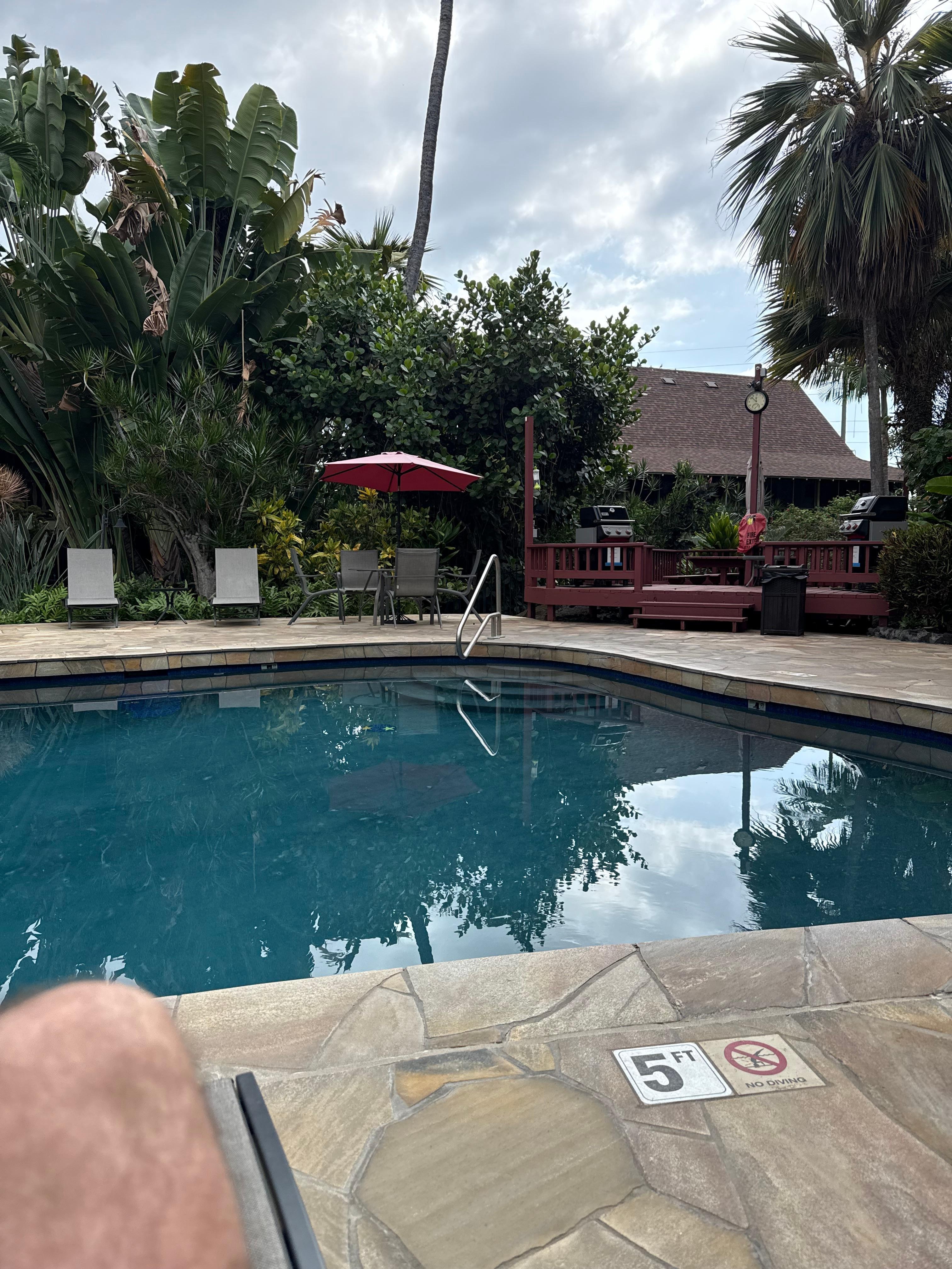 Step outside to discover the shared outdoor pool, perfect for a refreshing dip, or fire up the grill for a delightful barbecue evening. Safety features such as smoke detectors and a deadbolt lock ensure peace of mind during your stay.