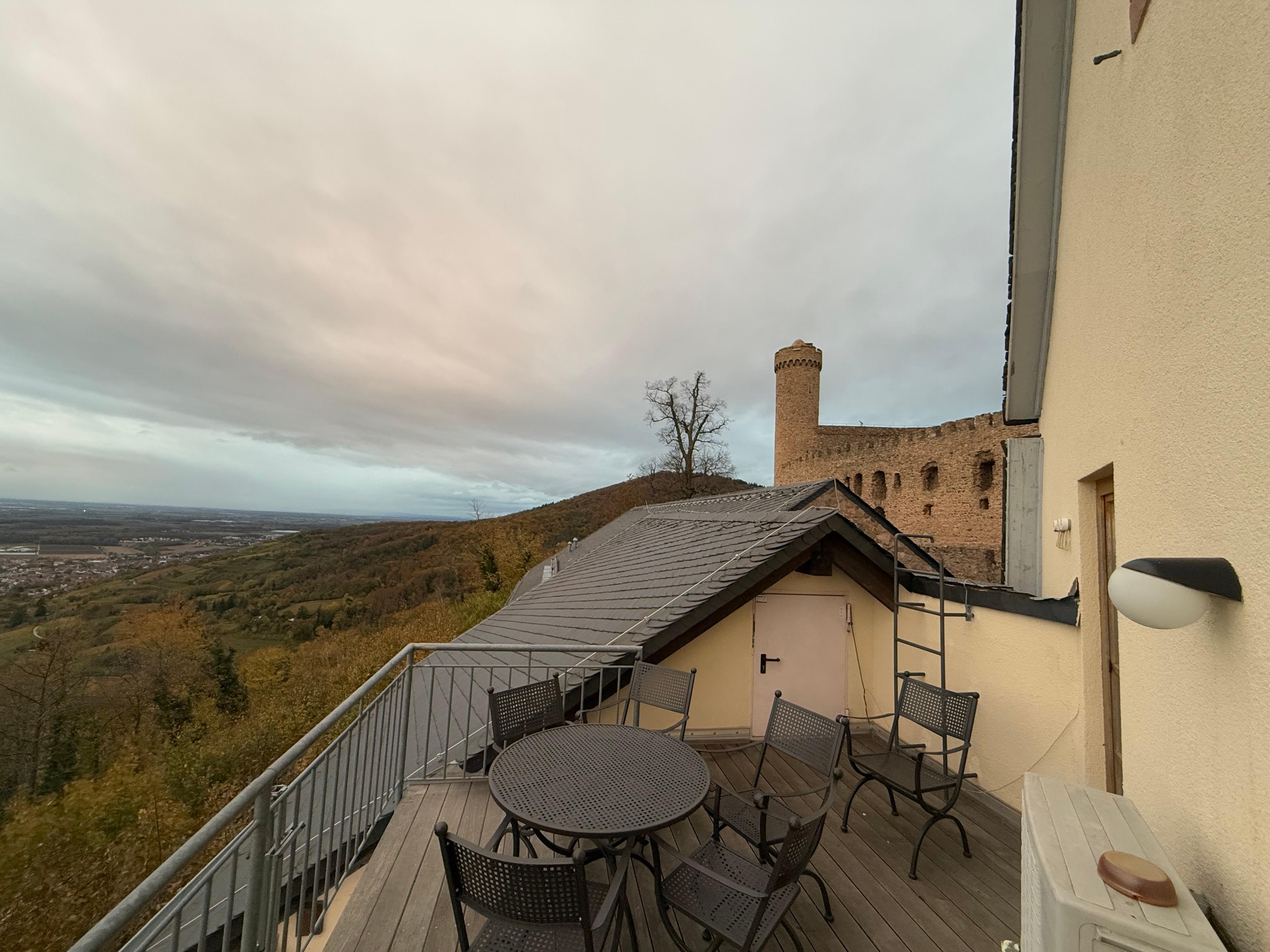 Eine wunderschöne Ferienwohnung, mit viel Liebe zu Detail eingerichtet. Vollausgestattete Küche, Terrasse mit traumhaftem Blick in die Rheinebene. Wer möchte nicht mal gern auf einem Schloß übernachten. Dazu passende eine Vielzahl von Angeboten aus unserer Erlebnisgastronomie. Besondes beliebt sind unsere Rittermahle, Fondueabende, BBQ u.v.m