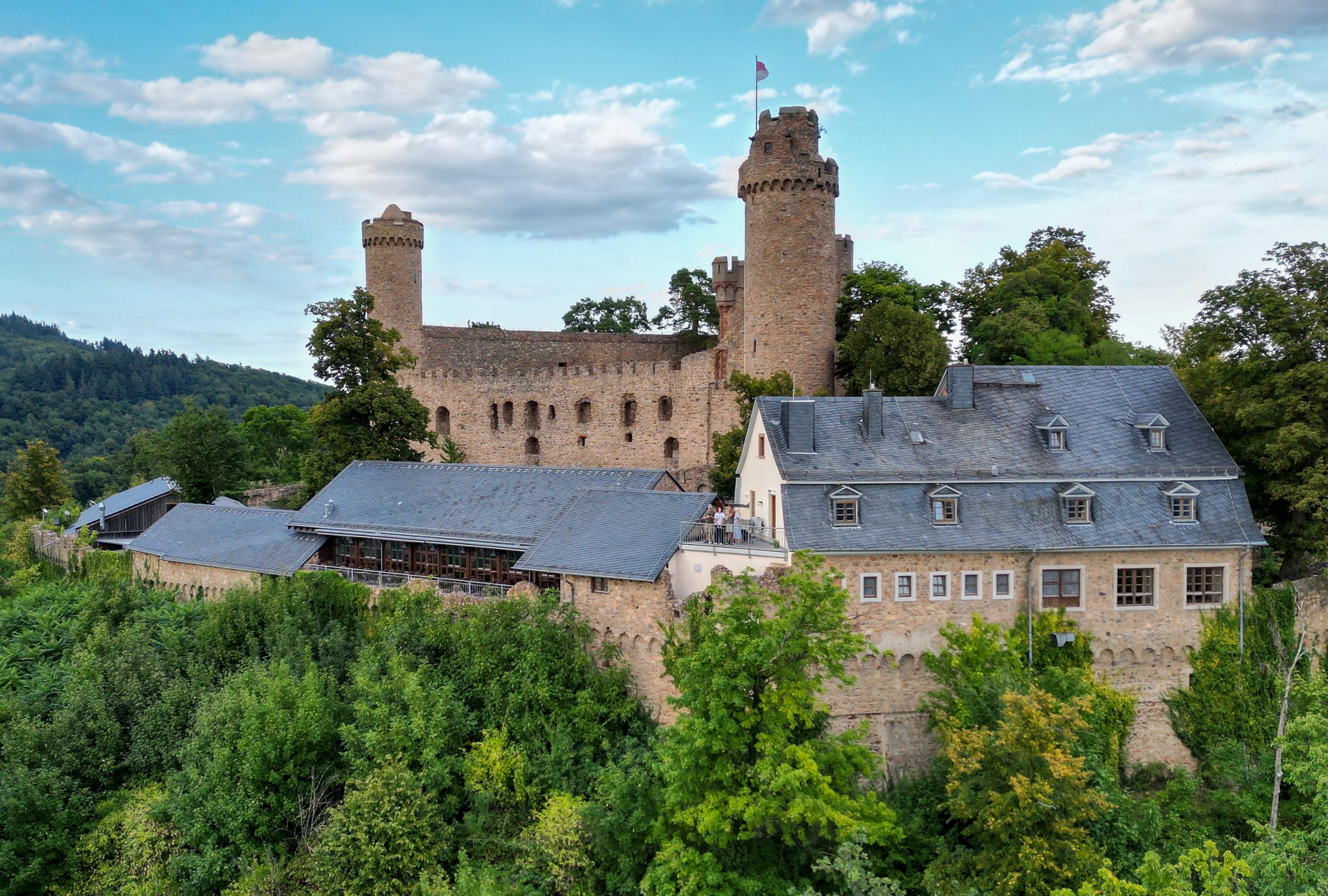 Seit nun mehr als 25 Jahren veranstalten Junker Andreas und seine Schloßgeister urige Rittermahle, berittene Turniere und spektakulären Feuerzauber in der Burgruine. In unserer Schlossschenke können Sie regionale Spezialitäten genießen, während Ihnen die Bergstraße zu Füßen liegt.