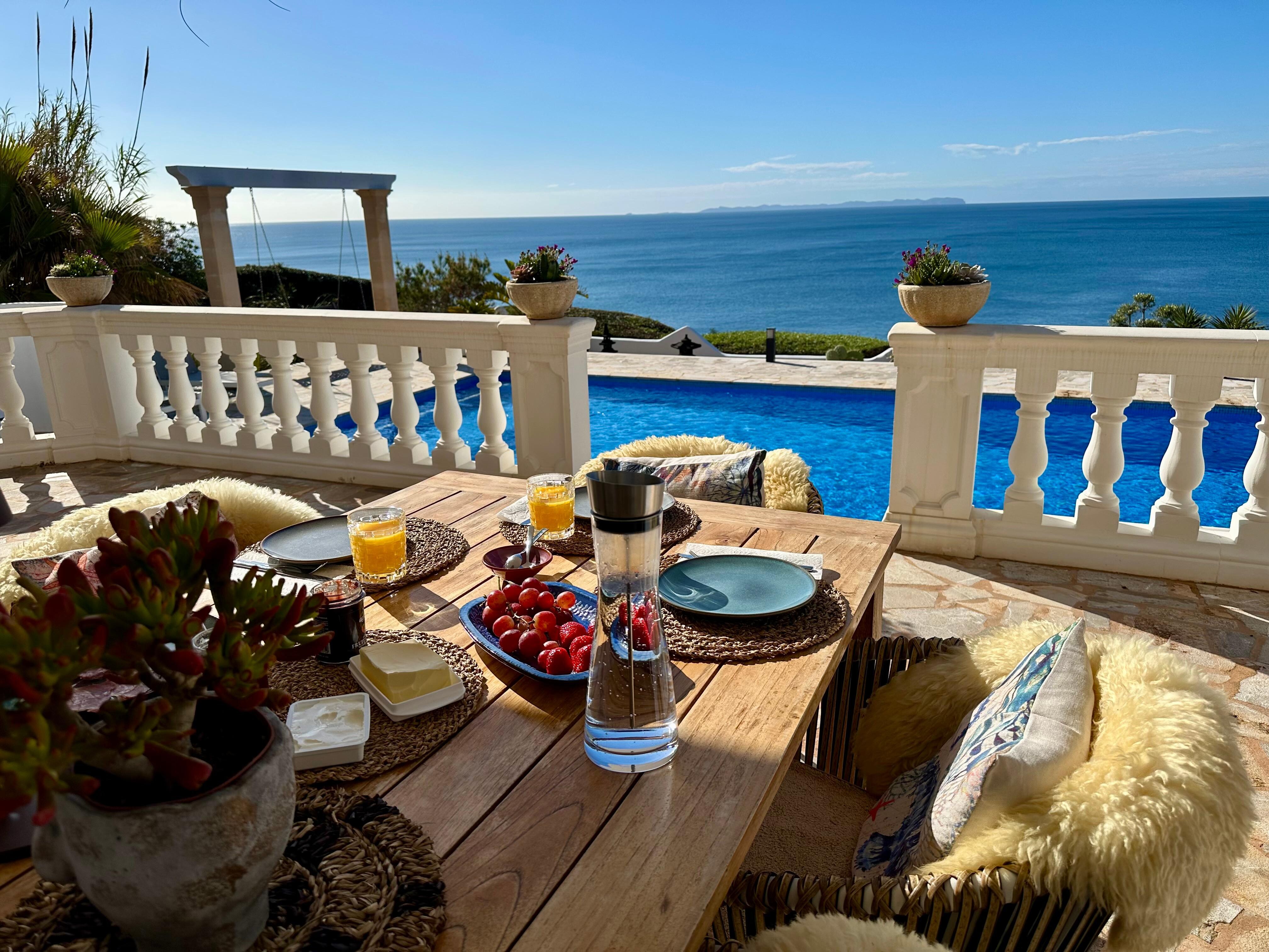 Es bleiben keine Wünsche offen. Atemberaubender Meerblick, tolle Einrichtung, perfekte Ausstattung, super freundliche Kommunikation und unfassbare Sauberkeit.Wir sind erst gegen 23 Uhr angereist und trotzdem super freundlich und sogar mit tollen Snacks im Kühlschrank empfangen worden. Bei der Abreise durften wir problemlos so lange bleiben, wie es für unseren späten Flug passte.Die Küche ist von Spülmaschine über Mixer bis hin zu Milchaufschäumer mit allen Geräten und Utensilien ausgestattet, die man sich denken kann. Selbst Kaffeebohnen-und Kapseln, Gewürze, Essig, Öl und Süßstoff sind da. In jedem Bad sind Fön, Seife, Toilettenpapier und mehr als ausreichend Handtücher vorhanden. Auch auf der Terrasse und im Poolbereich ist mit tollen Sitzmöbeln, super bequemen Liegen, vielen Handtüchern, Decken einem Heizstrahler und Weber Grill inclusive Gas an alles gedacht. Wir haben uns so wohl gefühlt wie noch nie und kommen in jedem Fall wieder!