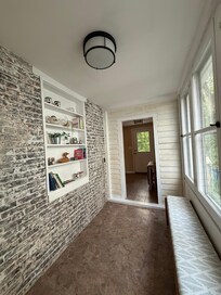 Every aspect of this home has been remodeled while preserving the original details of a bygone era. The living room is flanked by seven foot windows and includes an Article queen sleeper sofa. The open concept flows into the well-equipped kitchen and sunroom with exposed brick walls. The first floor includes a full bathroom with a clawfoot tub as well as a dining space, laundry and an additional half bath.