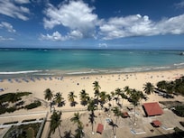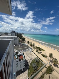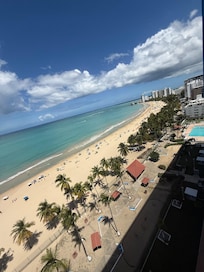 Amazing views of beach and San Juan! Steps away from the beach. Spacious condo with great views. Condo needs some TLC but is in a great location. Walgreens across the street was a life saver!