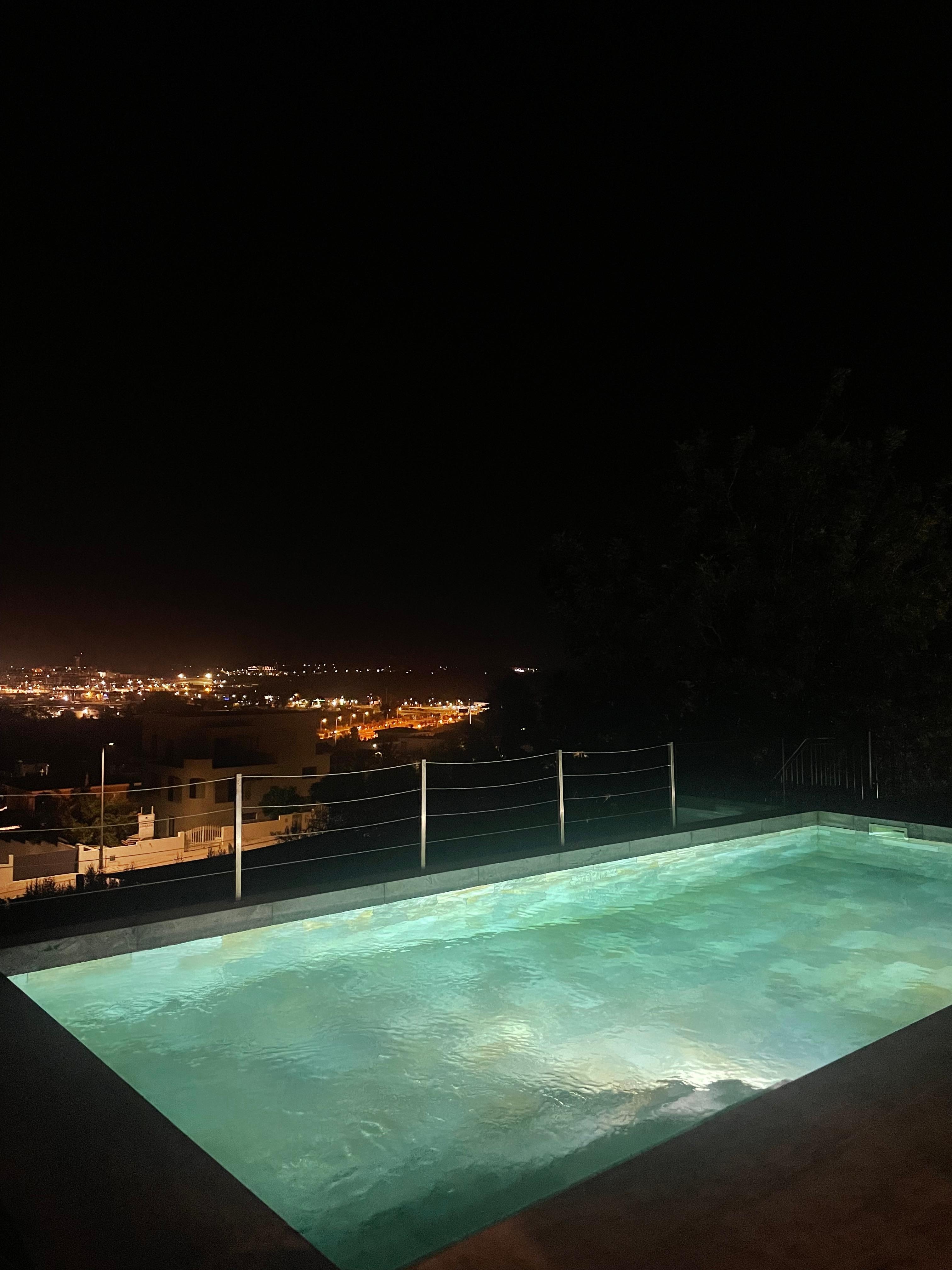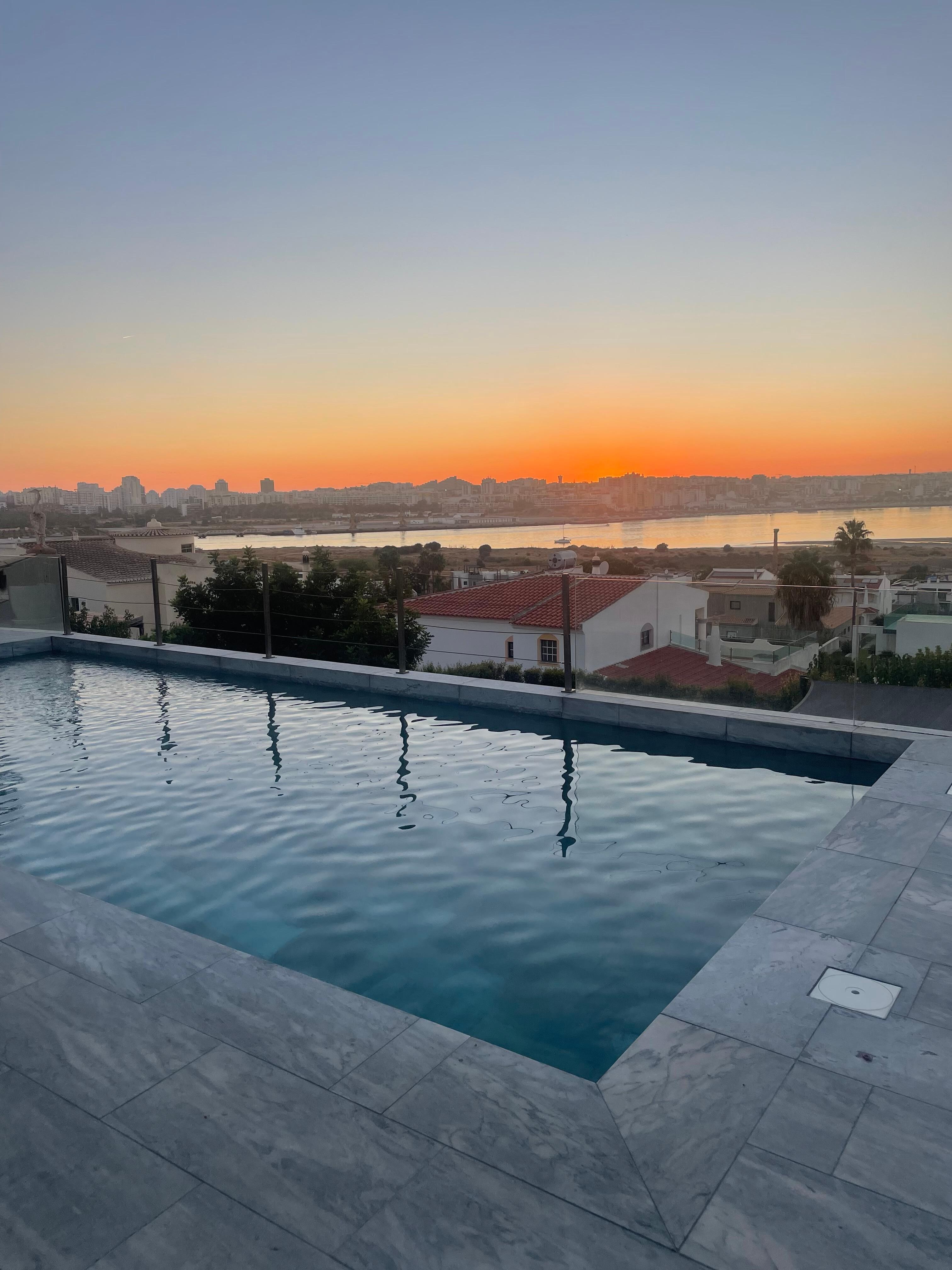 Built in 2018, this modern luxury villa has mighty views over the Arade River, Portimao's natural harbor. Present are a spacious living room, open kitchen, four bedrooms and an elevator connecting the two floors and the large garage. The living room overlooks the attractive terrace with pool, sun beds and a covered outdoor dining table for 10 people.