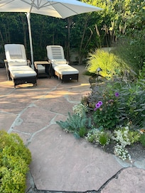 This rental is not for the entire home. It is a private bedroom, bathroom, jacuzzi, and garden within the home. Guests do not have access to the living room or kitchen. It has a separate entrance and is closed off from the rest of the house, but it is not a detached unit. It shares a wall with the rest of the home, but is extremely quiet and private.