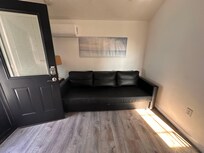 1 bedroom cottage 3 houses from the beach. Located at the rear of our main house. Can accommodate 3 (maximum 2 Adults and 1 child/teenager). Private patio area and outdoor shower. Walk to shops, restaurants, ice cream, mini golf, liquor store, coffee and bagels. Two TVs with Roku, refrigerator/freezer, microwave, toaster oven, Keurig, dishwasher, small all-in-one washer/dryer. AC. 2 Beach Badges. 280 sq ft.