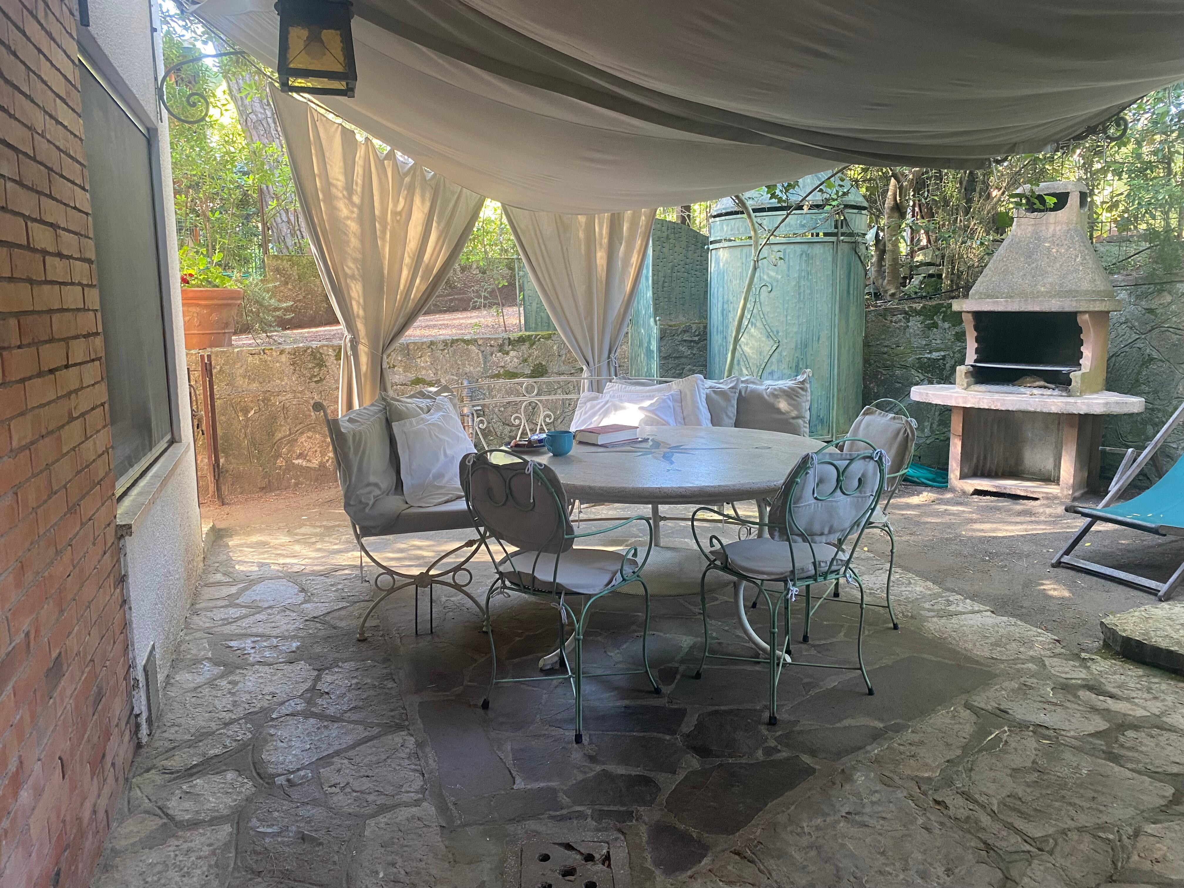 Diese Wohnung von 50 qm liegt im Erdgeschoss und verfĂŒgt ĂŒber einen eigenen Bereich im Garten, zum Essen im Freien ausgestattet. Der Eingang fĂŒhrt vom Garten ins Wohnzimmer, wo es ein Sofa, das zu einem Doppelbett oder in zwei Einzelbetten benutz werden kann. Auf der rechten Seite gibt es eine gut ausgestattete KĂŒche mit Gasherd, Gasherd, KĂŒhlschrank, Gefrierschrank, Toaster und beiden italienischen Mokka und Filterkaffeemaschinen. Eine Waschmaschine und einen GeschirrspĂŒler sind auch vorhanden. Von diesem Zimmer gibt es ein Badezimmer mit Dusche und ein Doppelzimmer mit Garderobe.