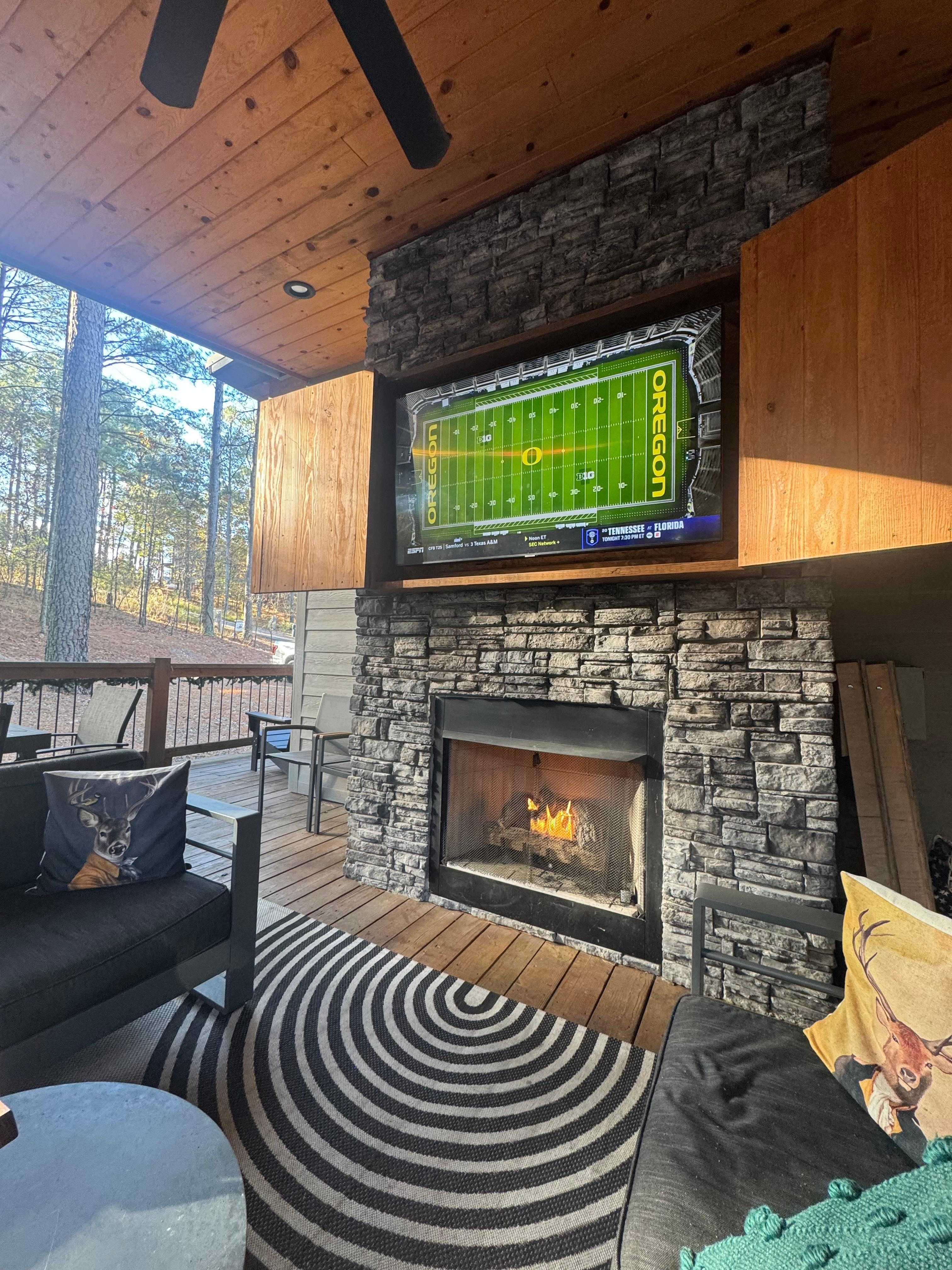 Please note that this is a forested area and there are times when the Oklahoma Forestry Service enforces a burning ban in the area. Fines can be upwards of $1000. Please check online for the current burn ban status before using the outdoor firepit