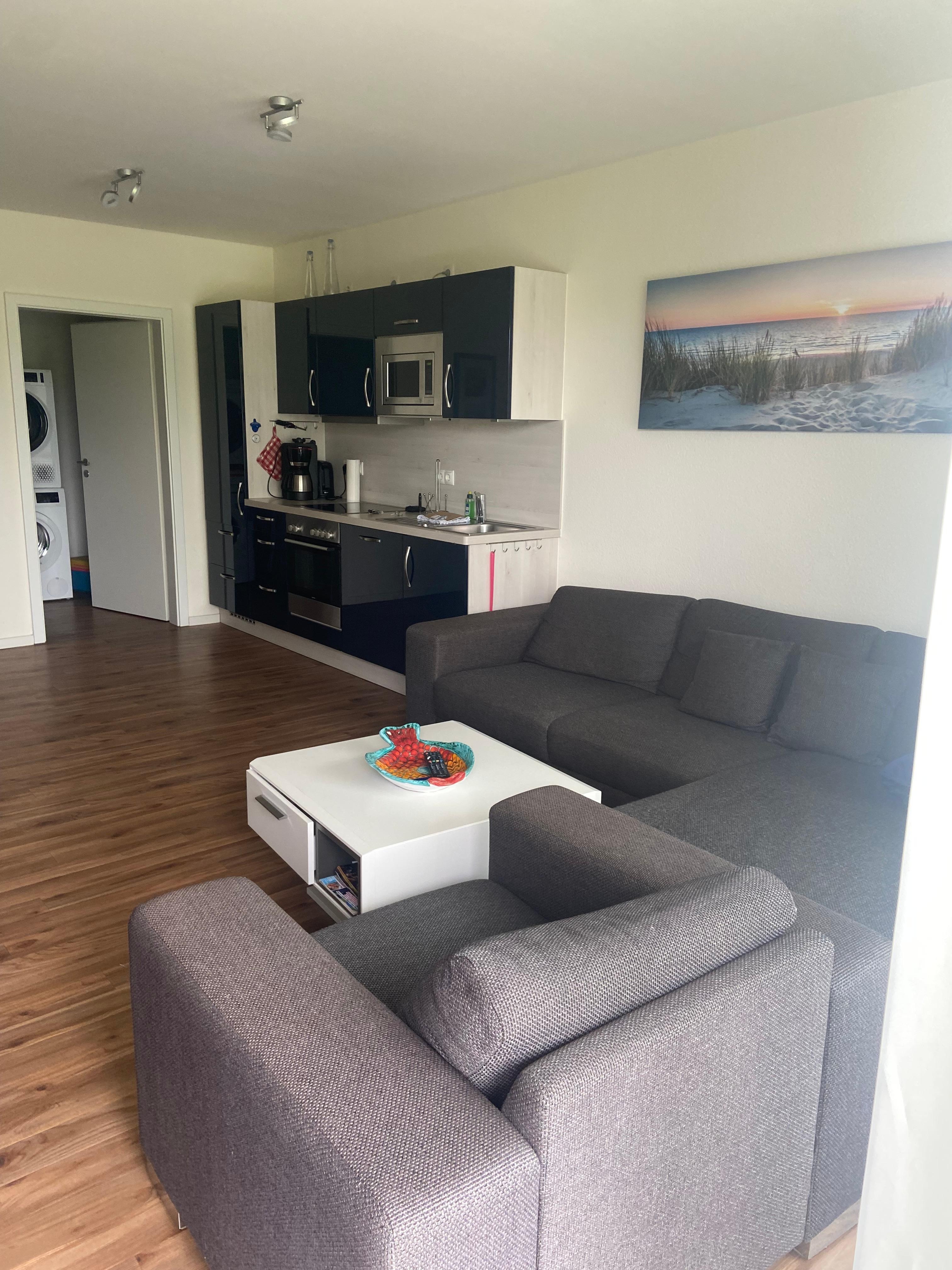 Verbringen Sie ein paar unbeschwerte Tage in unserer 68 mÂČ groĂen Wohnung. Die hochwertige und voll ausgestattete KĂŒche sowie der groĂe und moderne Wohn-/Essbereich lassen keinerlei WĂŒnsche offen.