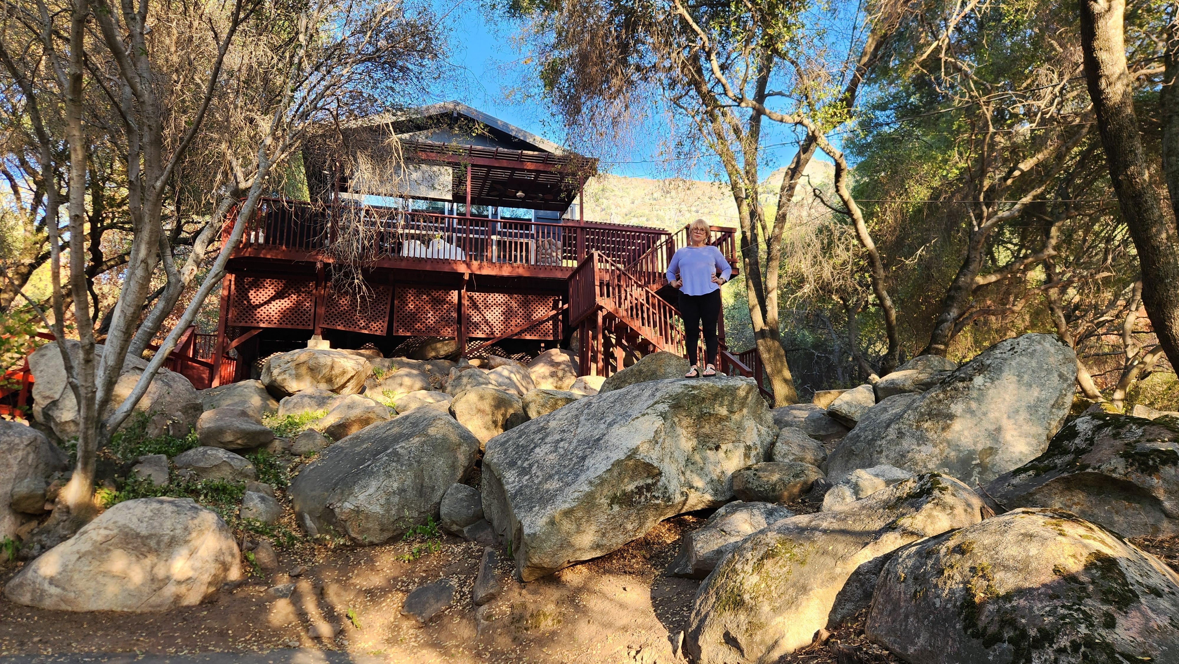 Featured by Condé Nast Traveler as one of top best places to stay near Sequoia National Park. Discover the gorgeous landscape that surrounds our treehouse style cabin on top of stilts, uniquely sitting on massive boulders. Listen to the sound of the birds, enjoy the beauty of nature, being perched amongst the tree branches on our huge outdoor space made of over 1000 sq ft of decking wrapping all sides of the cabin. Dine outside and enjoy the amazing views of “Eagle's Nest” mountain on Mineral King. Our home is conveniently located two miles from Sequoia National Park entrance.