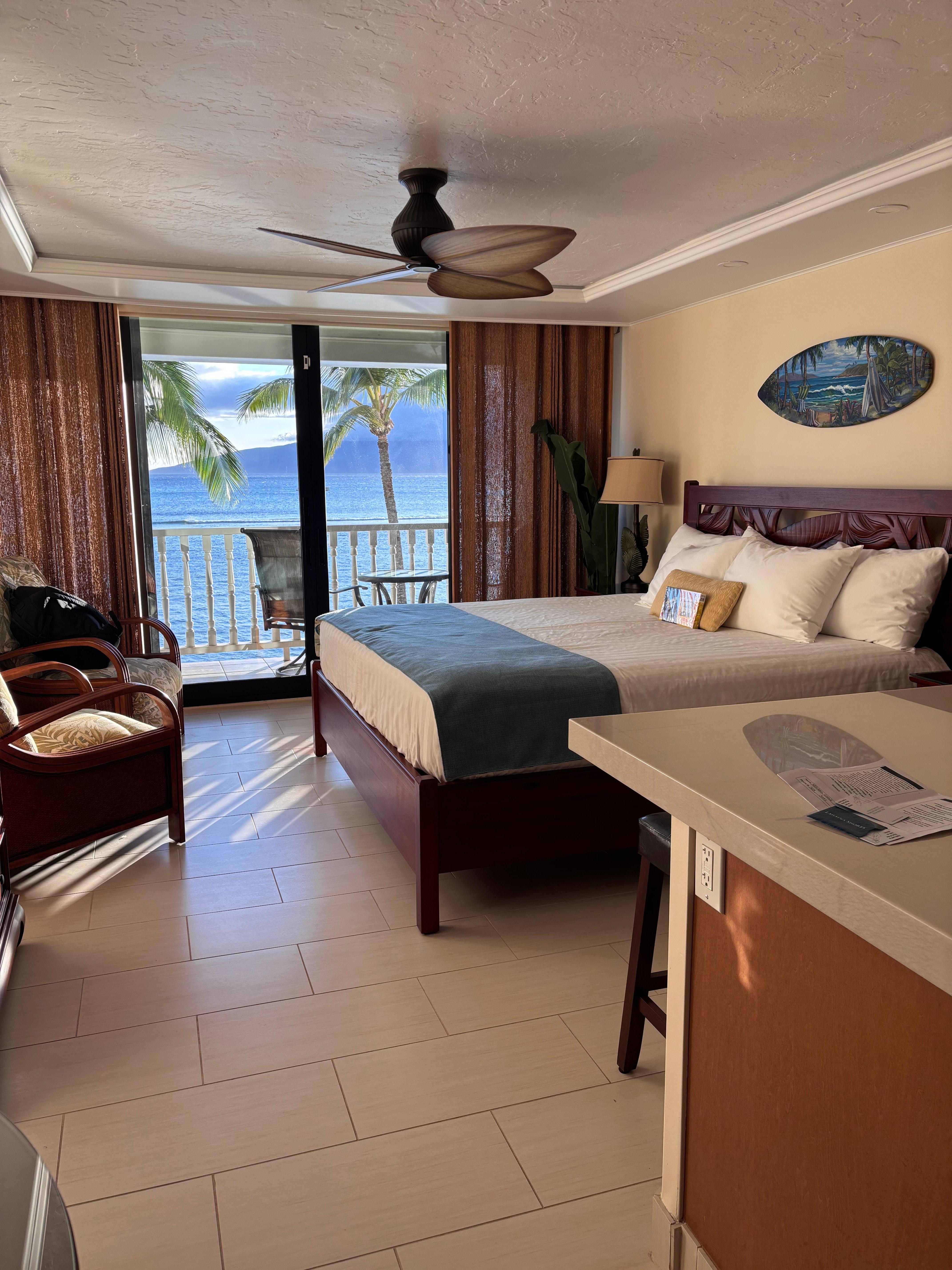 My husband and I had a wonderful stay at this condo. The studio was beautiful with a top-notch view, and it had everything we needed to make our stay comfortable and relaxing.The grounds are impeccably maintained, and the pool overlooks the ocean with a perfect water temperature. Since the property recently opened and many units are still unoccupied, parking was easy and hassle-free. We understand they’re still finalizing some arrangements, but this didn’t impact our experience at all.It’s worth noting that most of Lahaina is still in recovery mode, so you’ll need to drive to restaurants and stores. However, this was a minor consideration given everything else the property offers.We highly recommend this unit—the location, hospitality, comfort, and stunning views made for a truly memorable getaway.Susan was a great host, quick to respond and even left a box of chocolate covered macadamia nuts.