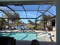 True to its moniker, "Island Breeze", this custom-crafted home was thoughtfully designed to honor its distinctive West Indies style. Upon entry, guests feel immediately at home in a carefully curated environment that is infinitely comfortable and effortlessly elegant, designed to accommodate a large gathering or a 5:00 cheeseboard with the same graceful aplomb. With a design that makes the kitchen, great room, and dining room the heart of family life, 10' walls combined with voluminous 12'-16' ceilings define the main living area creating a space best described as 'spacious but not ostentatious' with style characterized by thoughtful attention to symmetry and proportion. The upscale kitchen offers custom-crafted 42" soft-close cabinetry w/glass doors, a wine rack, pull-outs for spices/pans, and a coffee station. The resident chef will appreciate professional-grade Kitchen-Aid appliances including a 6-burner gas range with a convection oven, a multi-door refrigerator, dishwasher, a space-saving microwave, exotic marble countertops, a Koehler Farmhouse sink, and a custom pantry w/double glass doors. Nearby, the laundry room has built-in shelving/storage niches, a desk, and an oversized Whirlpool washer/dryer. Connecting the indoors to the outdoor oasis was a top priority in the design of this home, with 90-degree sliders that open to the oversized lanai (comprised of artistic pavers manufactured in Miami), where a custom-designed heated saltwater pool with an 8' cascading waterfall, stepping stones, a sun shelf w/two pool loungers, and an extended height pool cage w/clear-view screen to maximize water views --all with a highly coveted Northwestern exposure and an intersecting canal view, await. Fuss-free furniture is arranged to encourage leisurely conversation and relaxation, The nearby cabana exudes casual sophistication with its hand-crafted Cypress ceiling, sink, grill, refrigerator, and built-in ice bin. An island with a granite top is a natural gathering place for family and friends, creating an undeniably 'resort-style' atmosphere. The Primary suite was designed for relaxation, with a spa-like ambience characterizing the bathroom. Here, an exquisite chandelier, dual vanities, a Victoria and Albert freestanding soaking tub, a walk-in shower with a rain shower head, Brizo water faucets, and a private water closet with a bidet are found. Two oversized guest bedrooms share a bathroom that offers a large walk-in shower, Mahogany cabinetry, and marble countertops. Guests will delight in the 10'x10' outdoor shower with 5' stucco walls and a vaulted screen cage roof for privacy. Meticulously maintained mature Florida landscaping, a customized plantation-style concrete tile roof, an eye-appealing brick paver driveway and an 8' wide entry walk enhance the home's extraordinary outdoor appeal. Nestled in the highly desired golf community of Rotonda West, this stunning home is where timeless beauty meets unrivaled quality.