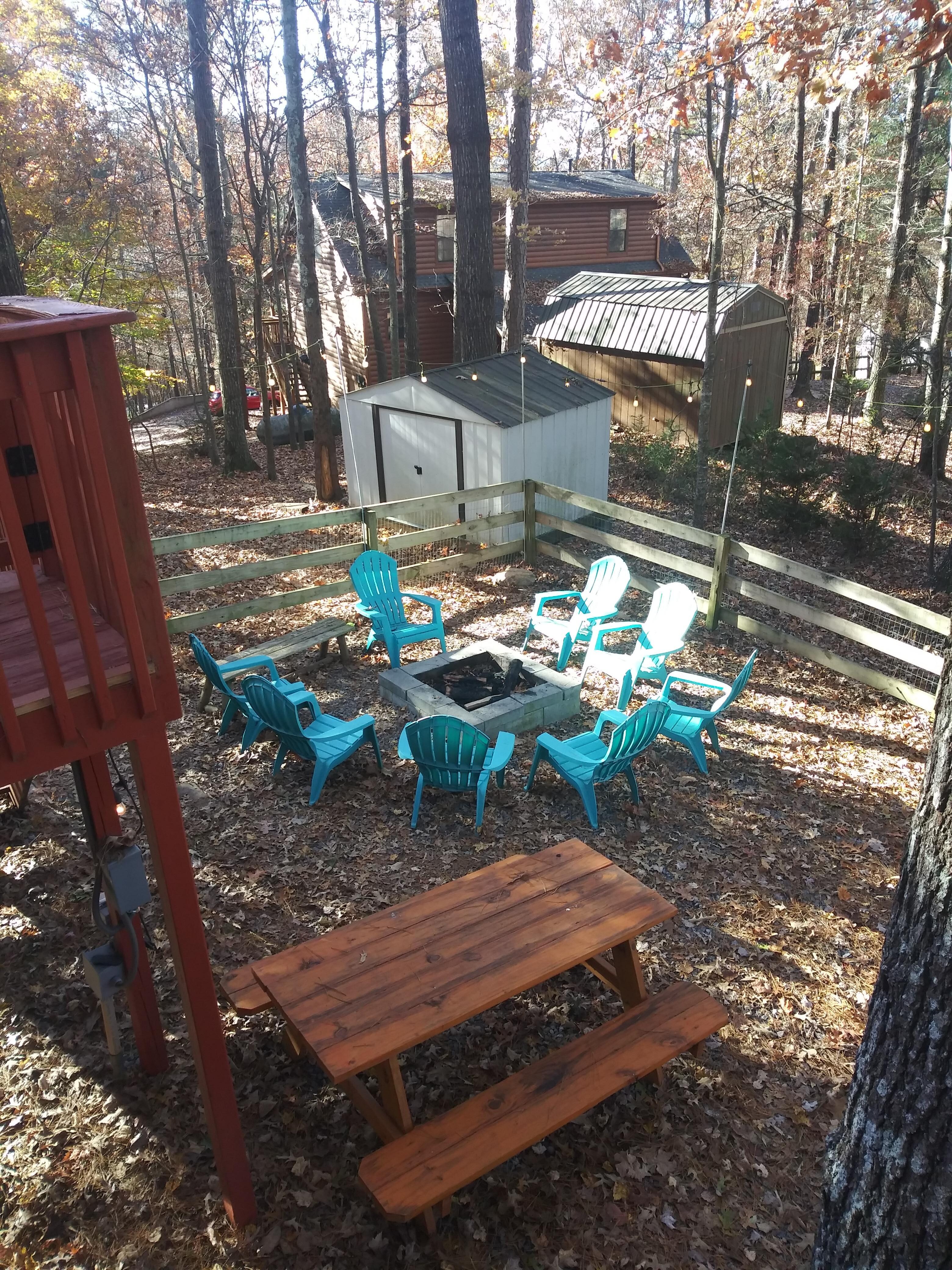 • Front patio is perfect to enjoy a cup of coffee on the private porch swing and rocking chair in the morning and watch the sunrise through the forest. • High speed Wifi is available and there is a private desk located in the master suite if work just cannot wait.