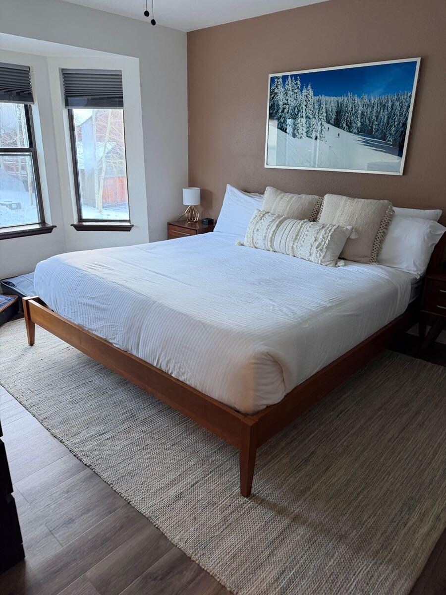 Peaceful setting walkable to downtown Breck and Peak 9 lifts. Rare one-bedroom in the wooded Warrior's Mark neighborhood w/ dedicated parking spot & large private deck. Light and bright with updated finishes throughout. The well-stocked kitchen opens to the lounge with West Elm sleeper sofa and large TV. Bedroom features a king bed with Casper mattress. In-unit washer/dryer, full bathroom with tub/shower combo. On free bus route. South facing. 1 block from pool and hot tubs.