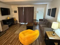 ☀ Modern, open living room with comfy seating & smart TV