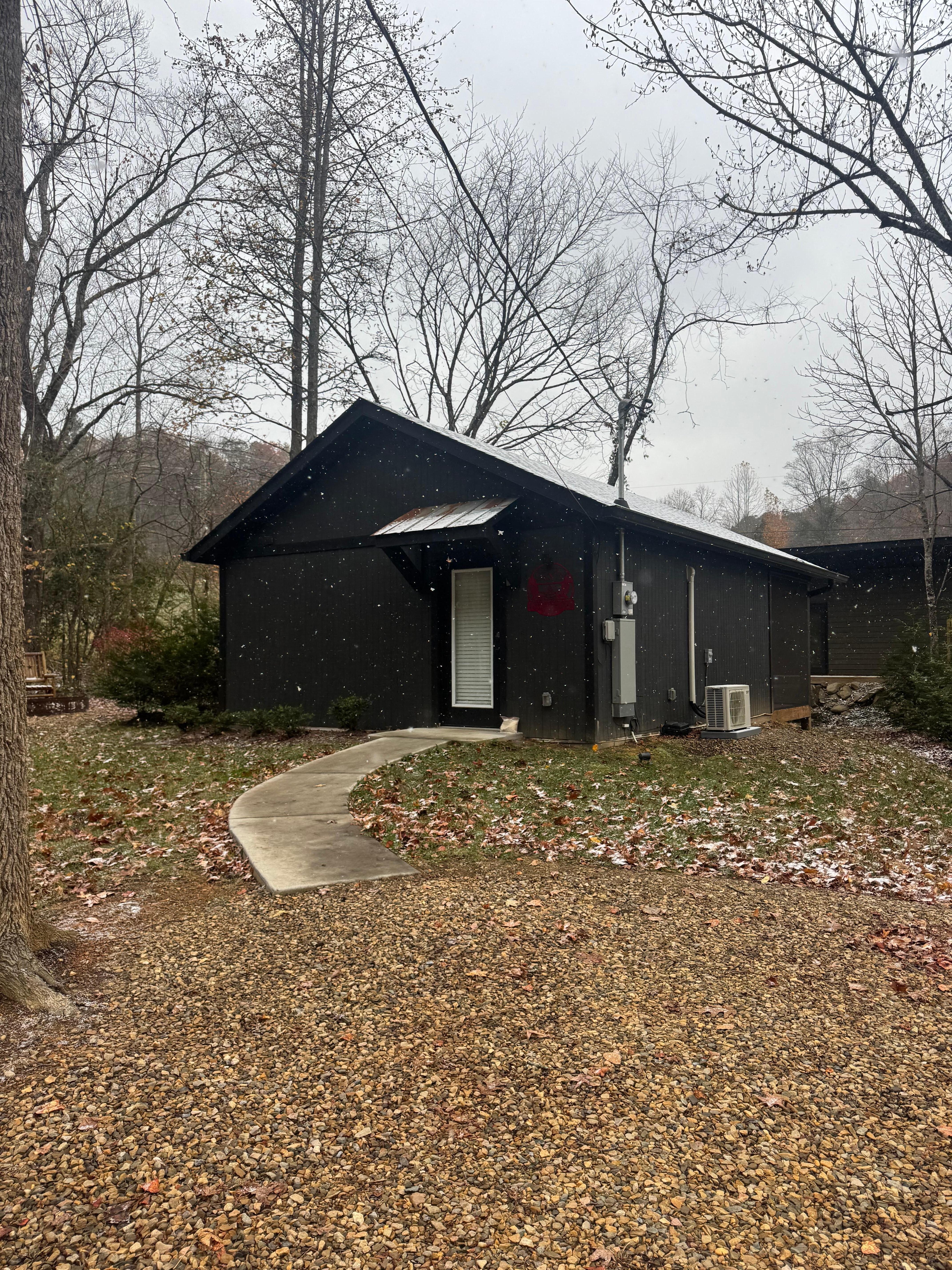 This lovely studio cottage has a fully stocked kitchen for all your cooking needs, please note there is no dishwasher Onsight. With a beautiful Love seat positioned in the center of the room with a large Flat screen Tv and an Electric fireplace for the extra special ambience while you cuddle with your loved one. Retire in the King-sized bed just behind the loveseat with a true night of relaxing sleep before your next day's adventure on one of the Great Smoky Mountains National Park hiking trails, with many conveniently located to the cabin. The beautifully designed bathroom has a large walk-in shower big enough for two.