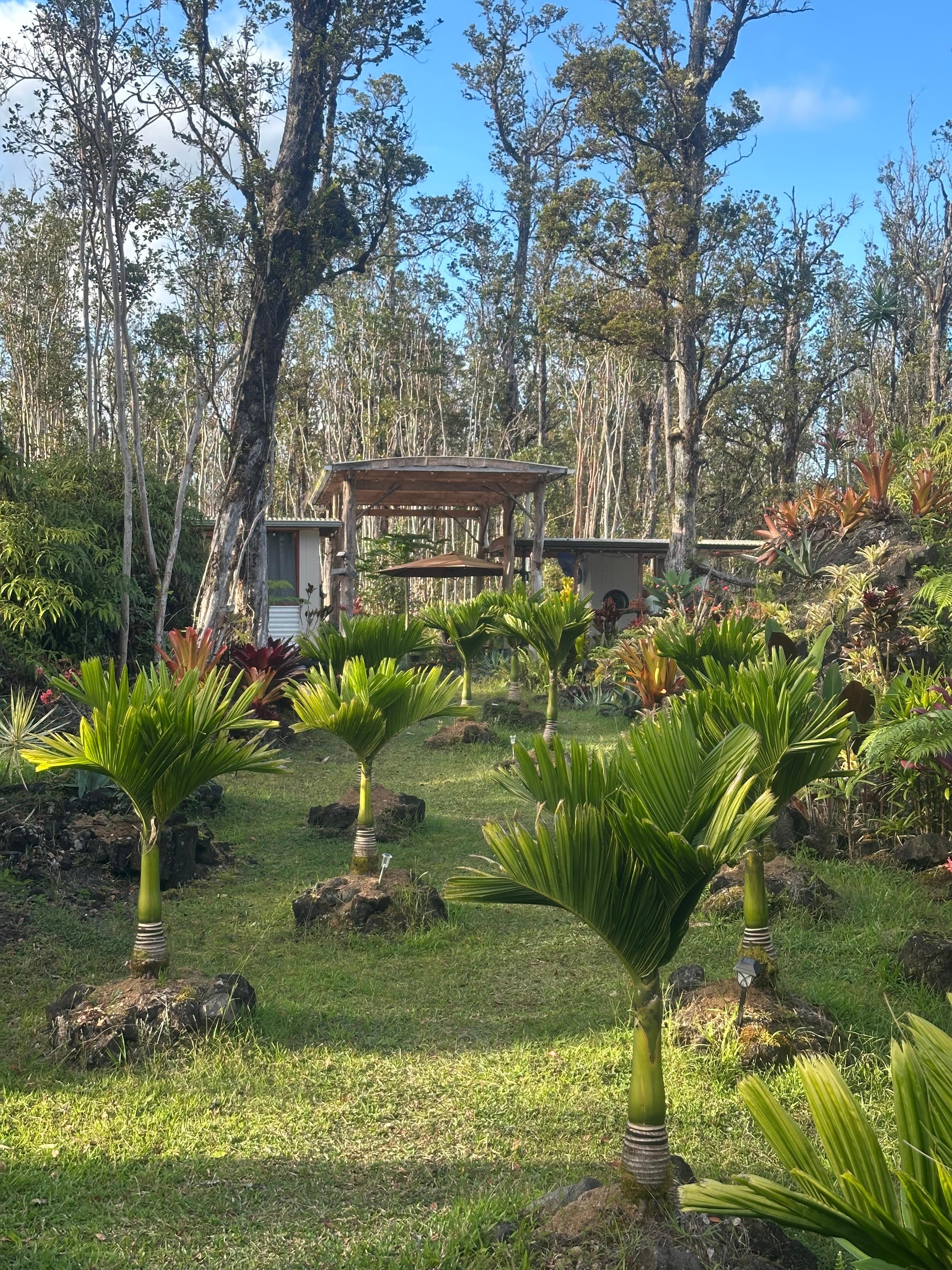 The stunning fissure, created by the earth-moving power of volcanic lava, is just one of the many impressive features of our property. The nurturing tropical rain and sun have created the legendary Ohia tree, which has been standing for hundreds of years. Our garden is also home to a variety of palm trees, layers of magical mosses, exotic tropical flowers, ferns, and succulents, all coming together to create a beautiful serene and inviting atmosphere for you.