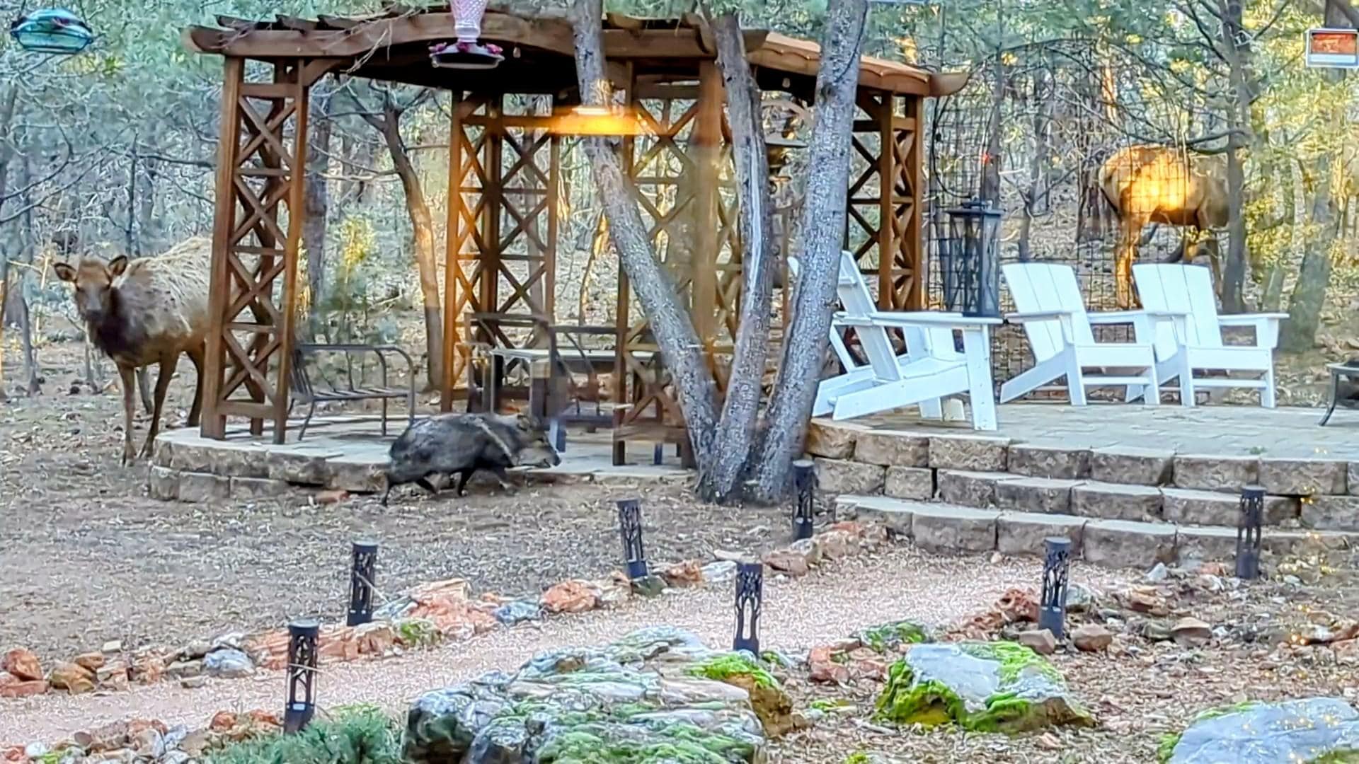 We have 4 security camera's on the outside of the house, one at each of the front doors, one above the garage and one in the gazebo to watch our incredible wildlife when we can't be there to enjoy in person.