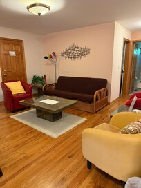 Wir haben 4 Schlafzimmer, 3 Badezimmer und kann bis zu 8 Personen schlafen (1 König, 2 Damen, 1 Doppelzimmer). Wir haben auch ein Futon, die zu einem Doppelbett und auch eine Luftmatratze herausgezogen werden kann. Das Haus ist komplett mit Bettwäsche und Handtüchern. Die Küche ist komplett eingerichtet.