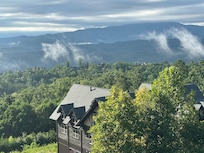 Located just minutes from action packed Pigeon Forge. It is a beautiful, easy drive. The soaring walls of glass let every room enjoy our most famous, Mt. LeConte. You can even see Clingmans Dome from the hot tub! The lodge is anchored by a 2 story river stone fireplace and a hand-crafted copper antler chandelier casts a warm hue on the vaulted cypress ceiling. You will know you have escaped civilization! The covered timber frame log porch will allow you to sit in nature from daybreak to late in the night, rain or shine, watching the redtail hawks. We have even spotted a golden eagle riding the high mountain winds on the top of the Bluff Mountain. Or you might want to meander your way down the flagstone rock path to the fire pit with friends and family for smores; making memories that will last a lifetime. This lodge is fun! whimsical, well-appointed and totally over the top in amenities. Pristine and cared for, our vision is that you leave pampered, inspired & refreshed by mountain life at its finest!