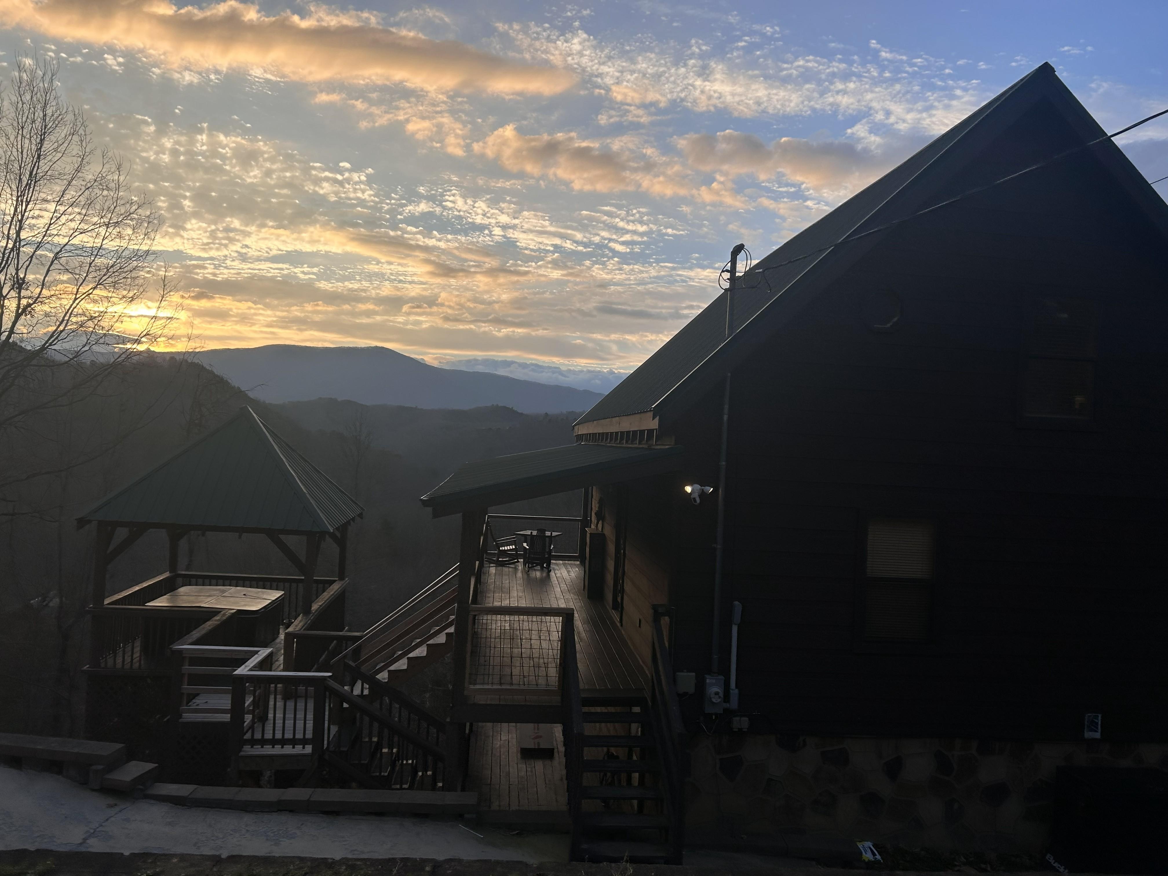 This cabin is sure to wow. The cabin has amazing mountain views with a wall of windows to take it all in. Step outside on one of its two wrap around deck to enjoy the magic of the great smokey mountains. There is a separate gazebo for the Hot Tub. This three-level cabin features a private bedroom and bath on each level with a Jacuzzi Tub. This makes it a perfect getaway for three couples or a Family Vacation where everyone enjoys their own space.