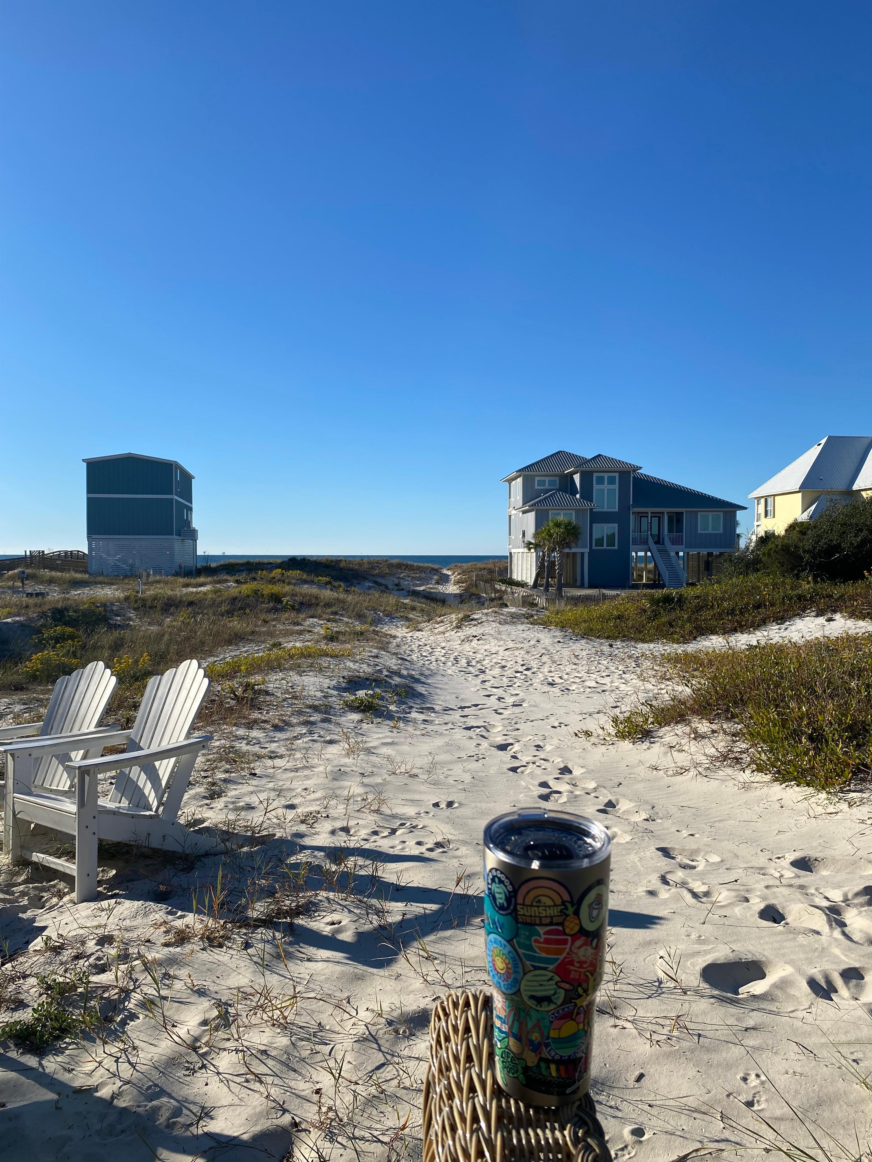 Adorable 3 bedroom, 2 bath single family home facing the Gulf of Mexico in the quaint town of Fort Morgan in Gulf Shores, AL! Located in the Morgantown subdivision, you're just steps (approximately 1,000 ft) to the beach with beach access and a great view. The property is practically, but not technically, beachfront with just one empty lot between you and the beach. Also, the deed to the property includes the access path to the beach, so you're not trespassing when you walk straight from your doorstep to the beach. Once you stock the pantry and refrigerator with food and snacks, you never have to leave the property to experience the beach for a long vacation or weekend trip. Enjoy your morning coffee on the covered porch with a swing and outdoor furniture while taking in the view. Grill lunch for the family in the afternoon with a barbeque pit on the second level of the deck. Relax in the Adirondack chairs at night around the firepit after a long day at the beach. Plenty of parking right up to the house to unpack your belongings using the convenient luggage ramp. Garbage is picked up and brought to the road for you 2x a week! Full spacious laundry room to store all the beach gear. The Fort Morgan area of Gulf Shores is the best-kept secret in town and has a very family-friendly environment.