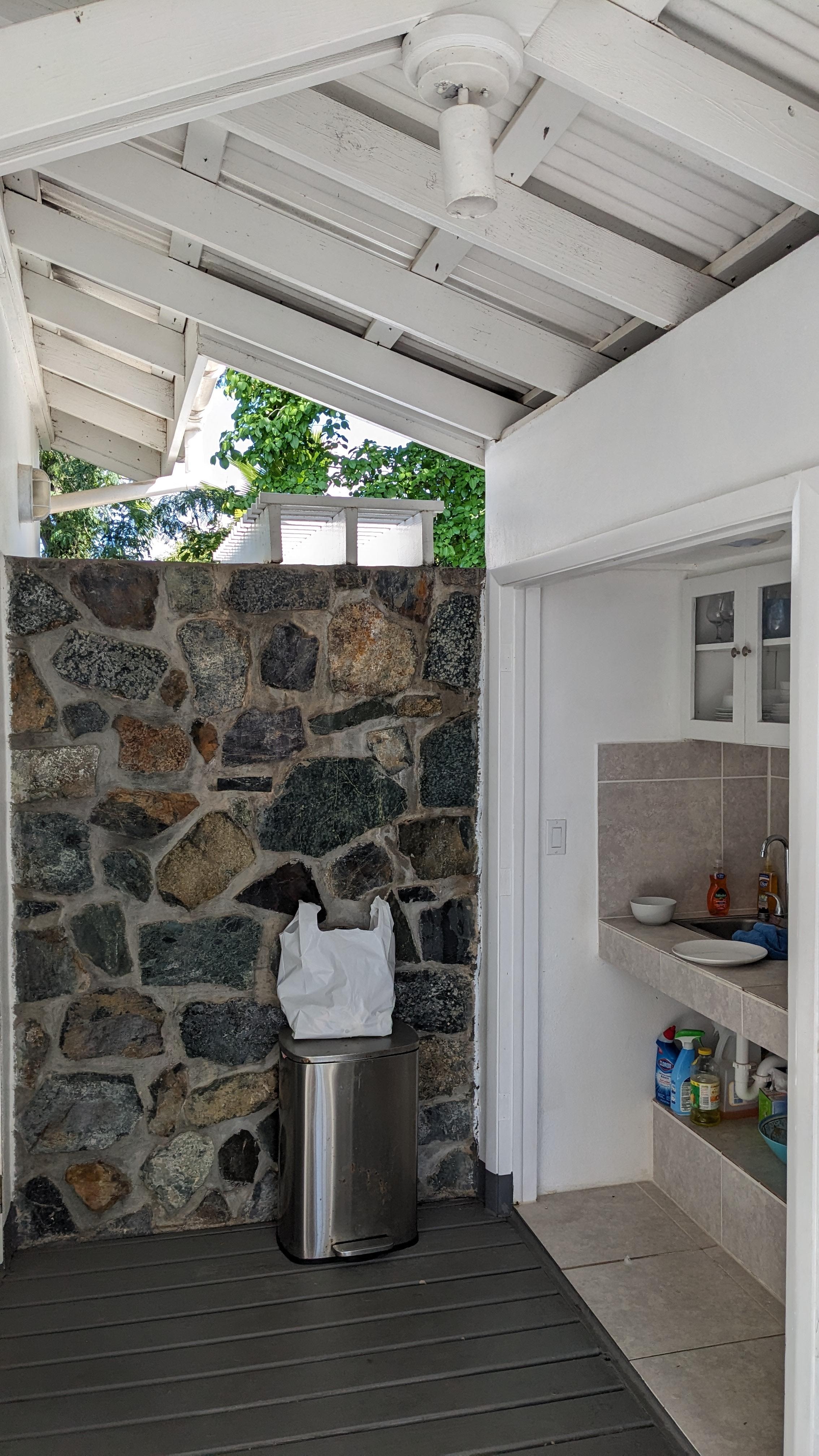 Trash removal must be performed prior to check out. There are trash containers close to Cruz Bay on the left when you turn left out of Great Cruz Bay Road and pass the Westin. There is no trash receptacle on the property. Everyone from the Villas are expected to bag their trash and carry them to the containers that are very visible on the road into Cruz Bay from the property. it is easiest if you take your bagged trash into town when you leave the property to go to the beaches, Cruz Bay, and/or restaurants in Cruz Bay. The manager and the housekeepers will not take the garbage out for you.