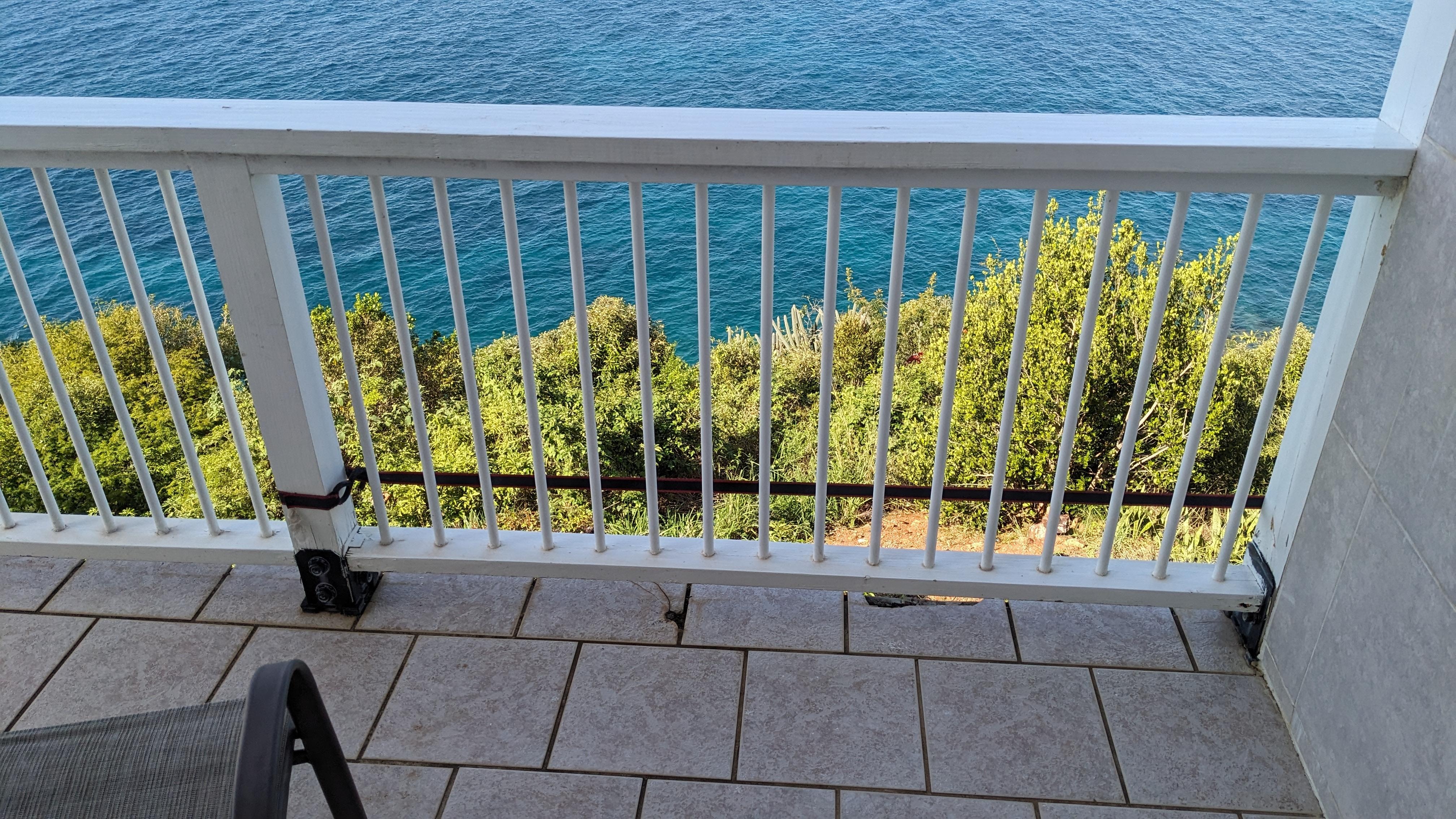 Escape to your own tropical paradise! This stunning 2-bedroom, 2-bathroom villa is located on a quiet road just steps from the Atlantic Ocean in Chocolate Hole, St. John USVI. Enjoy breathtaking views of the ocean, islands and beautiful sunsets from your private balcony, or relax in the secluded pool after a long day of exploring. The Villa Belvedere Oceanfront Suites comprise a connecting pod to the larger space, Villa Belvedere. Villa Belvedere, the main house overlooking the Caribbean was mostly blown down by hurricanes Irma and Maria in 2017. Both suites have balconies with the classic 180 degree, unobstructed million-dollar views of the Caribbean, St. Croix, St. Thomas, and the surrounding cays. The ½ acre property sits directly on the waterfront which is approximately 150 feet down from the edge of the cliff. You will enjoy the most superior ocean views on the Island of St. John because of their proximity to the rocky cliff overhanging the Caribbean.